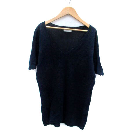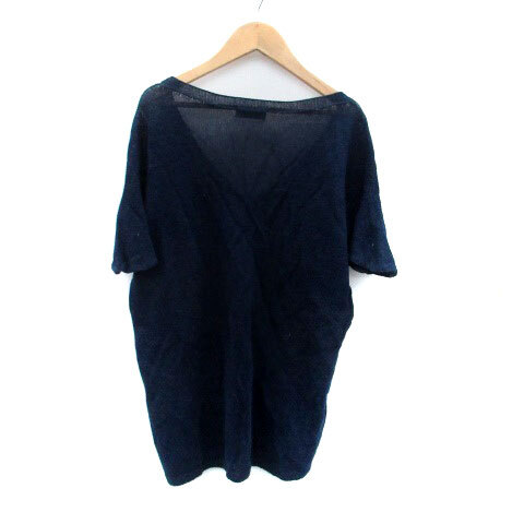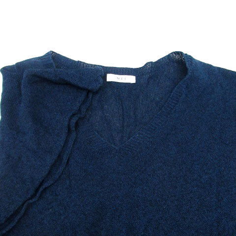 ネイ NEI サマーニット カットソー Vネック 半袖 麻 リネン混 紺 ネイビー /HO51 レディース
