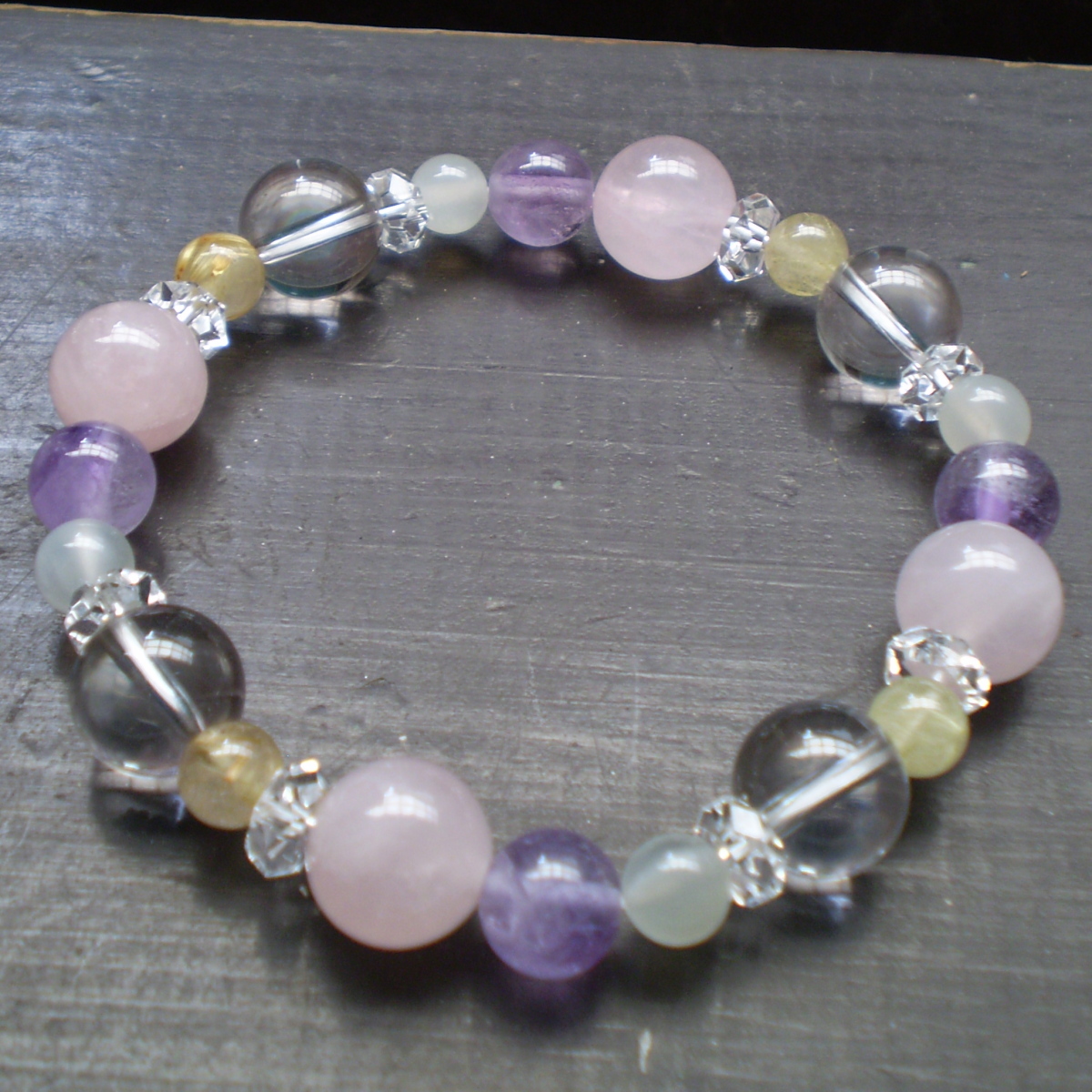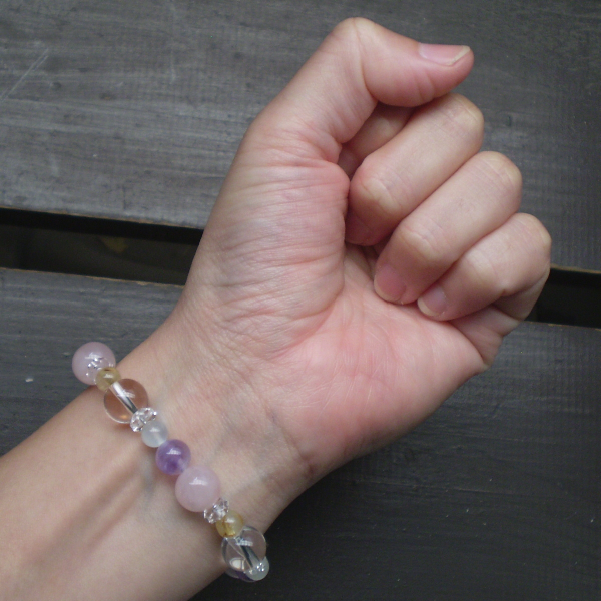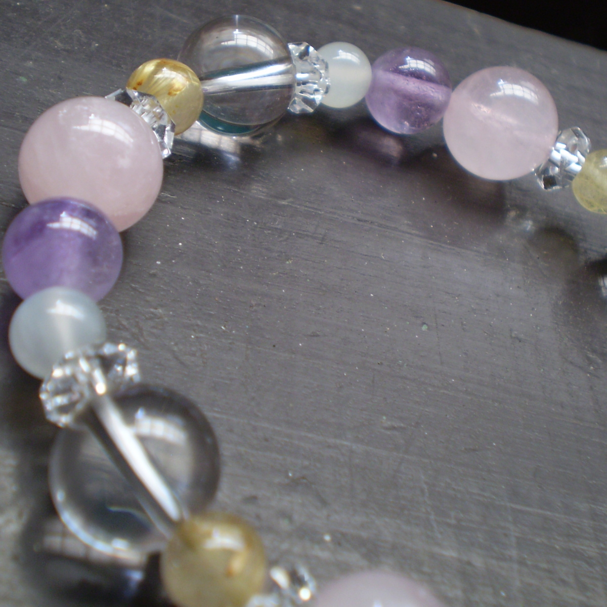 ローズクォーツxアメジストxムーンストーンxルチルクォーツブレスレット 天然石 パワーストーン