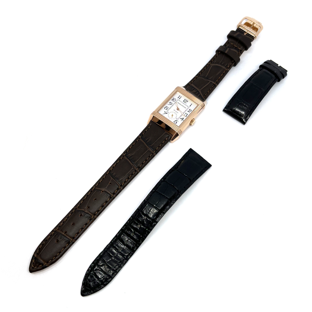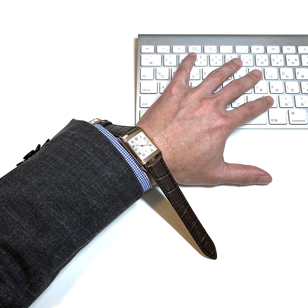コメント | ジャガールクルト ビッグレベルソ アールデコ 270.2.62 が入荷しました。アールデコ調のインデックスフォントが特徴的なビッグレベルソ アールデコは1990年代後半から数年の間だけ販売された稀少なモデルです。本品はベルトを新品のクロコ型押しレザーに交換済みで、ケース・Dバックルにも目立つ傷のない非常にきれいな状態です。 ~出品担当の福井より~ 時計愛好家からも常に一目置かれる名門マニュファクチュール「ジャガー・ルクルト」の代表的なモデル レベルソの端正なレクタンギュラーケースとダイヤル上下のゴドロン装飾の美しさをお楽しみください。 | ||
