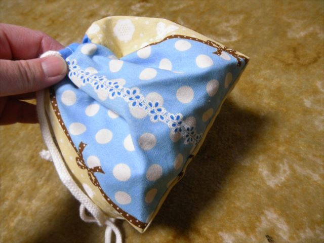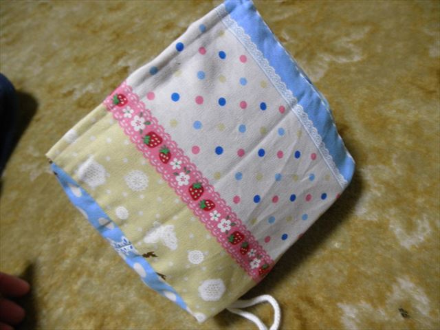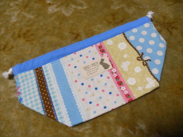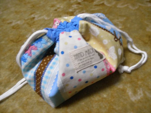 ハンドメイド品★水色系パッチワーク風柄 お弁当用 ランチ巾着★★