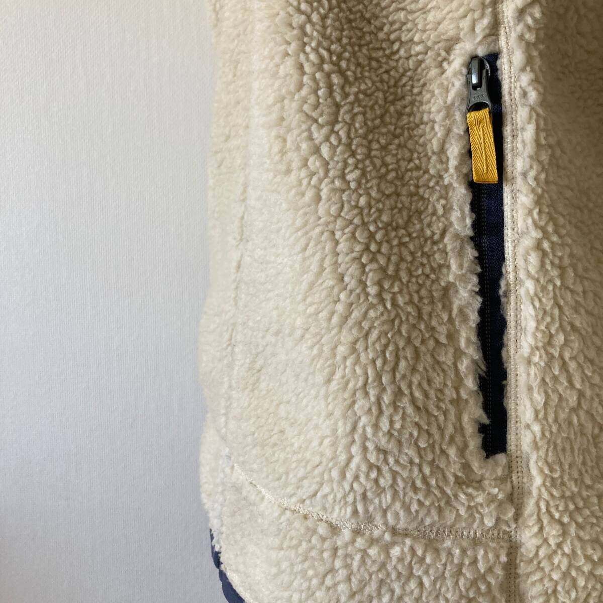 厚手のシェルパフリースを使用、モコモコした質感で暖かく快適な着用感です。