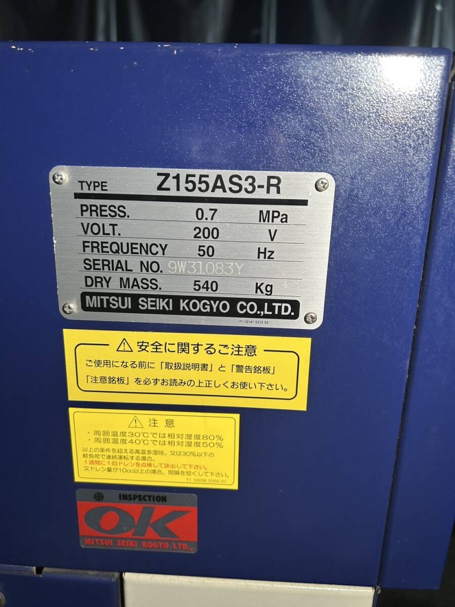 三井精機 スクリューコンプレッサー Z155AS3-R 原則引き取り