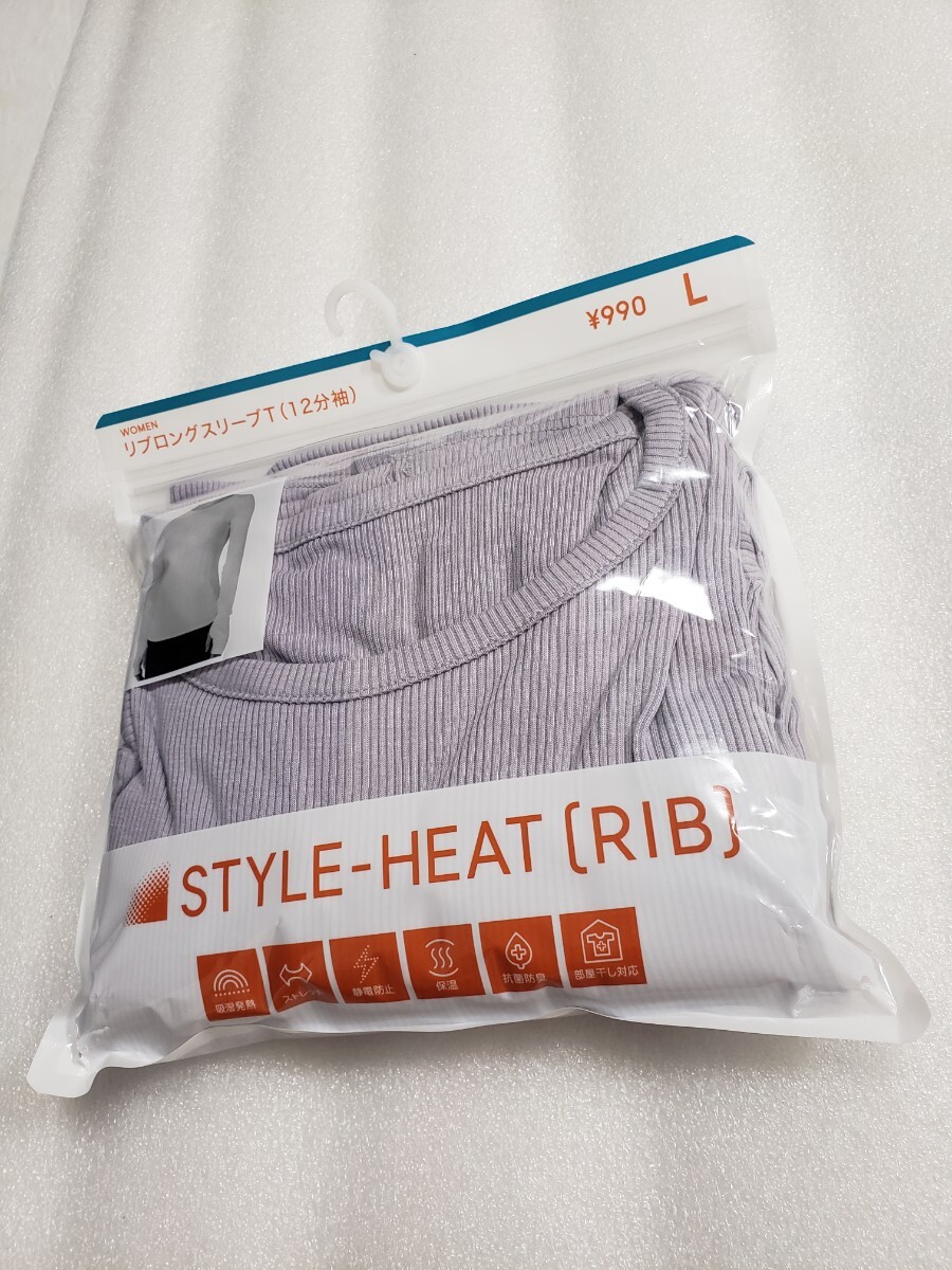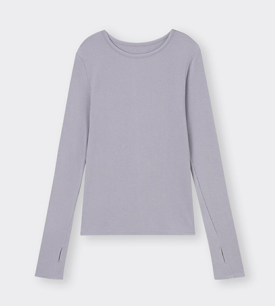 GUのスタイルヒート、リブロングスリーブTシャツ12分袖、Lサイズ(カラー表記はグレーですが実物は薄ラベンダー系色味)、未使用品です。