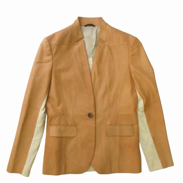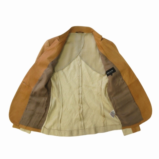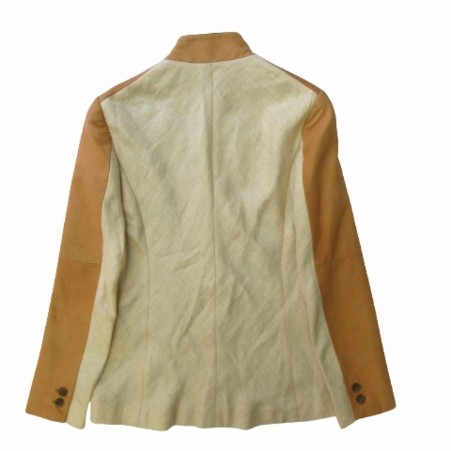 コムサデモード COMME CA DU MODE ラムレザー リネン 切替 テーラード ジャケット ブレザー スタンドカラー ナローラペル 1B サイズ9