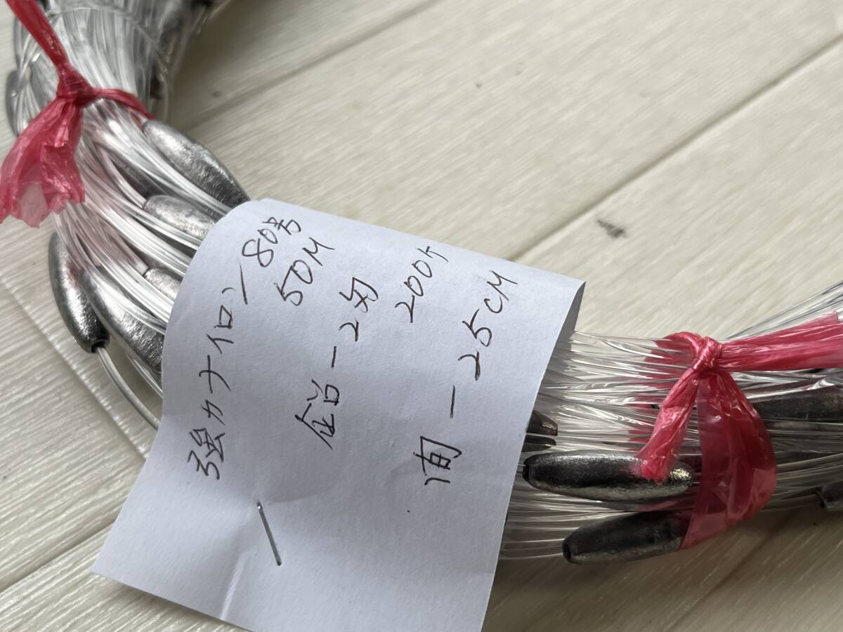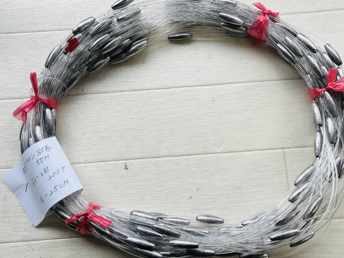サワラ、ハマチなどのとローリング用のビショマです。強力ナイロン80号50m鉛2号200個を25cm間隔で打ってます。総重量1.62kg発送はレターパックライト(全国一律430円)の対応になります。発送は木曜日以外の出荷になります。ビシ鉛落札後制作しての発送になります。