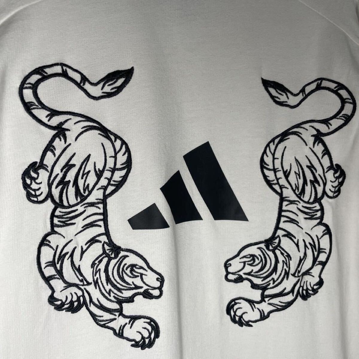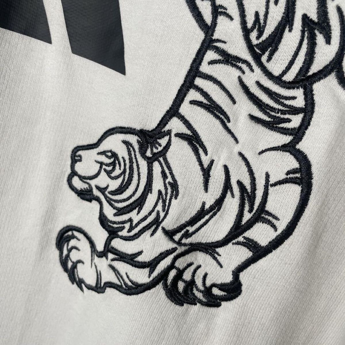 ・前後にパフォーマンスロゴのプリント、バックにトラの刺繍デザイン