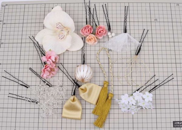 和装 髪飾り 18点セット つまみ細工 高級造花髪飾り 成人式 結婚式 卒業式 ヘアアクセサリー ヘアピン 花柄モチーフ#0138-f