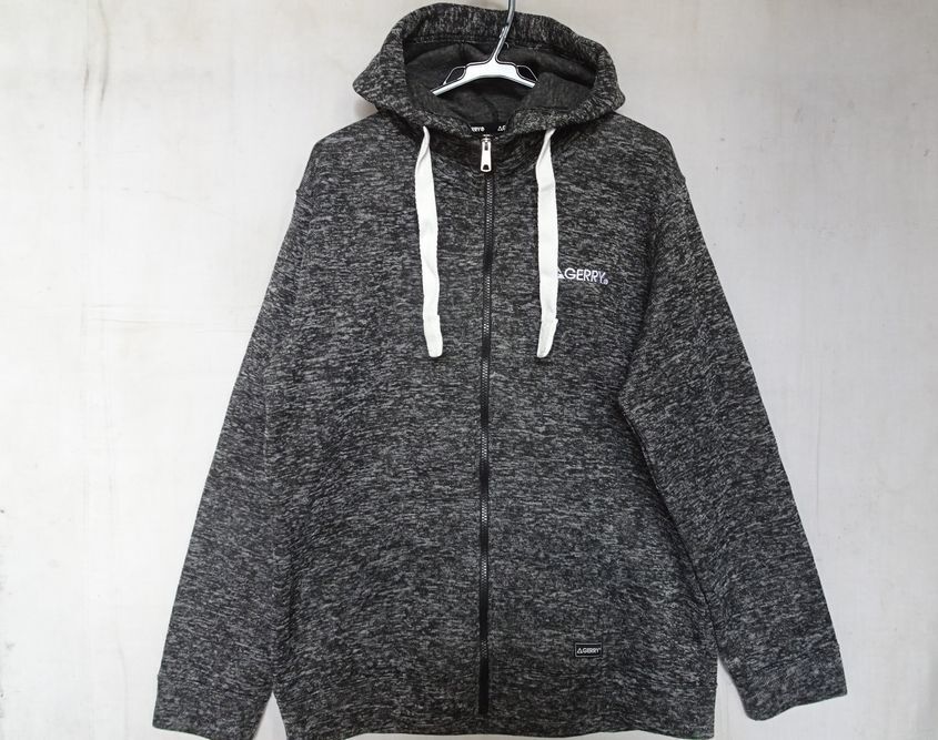 GERRY/ジェリー/長袖パーカ/表地ニット系素材/裏起毛素材/前ジップアップ/フードひも幅広/アウトドア/グレー杢/4Lサイズ(3/6R7)