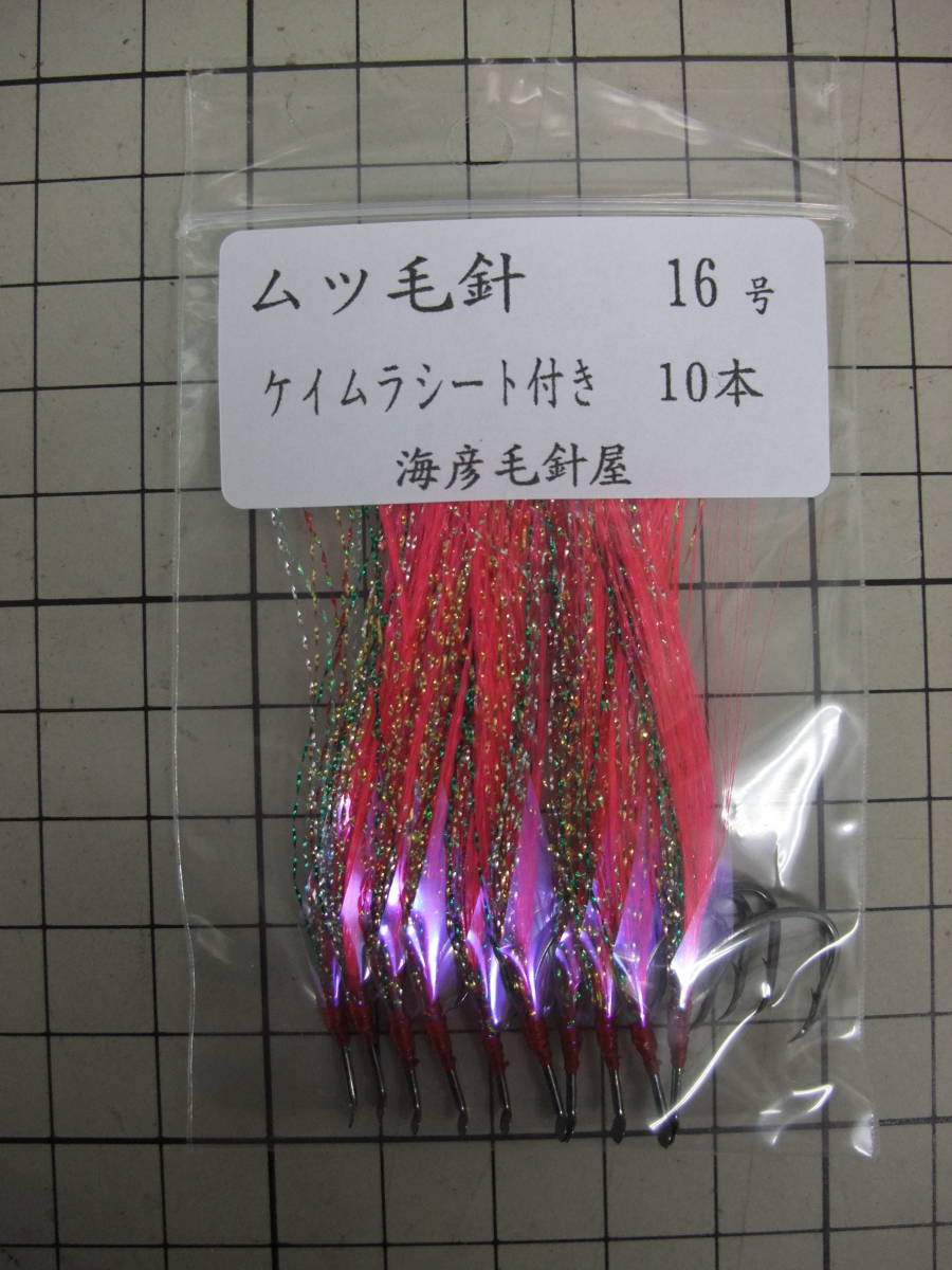 16PK ムツ16号毛針 ピンクフラッシャー ケイムラシート付き 10本セット