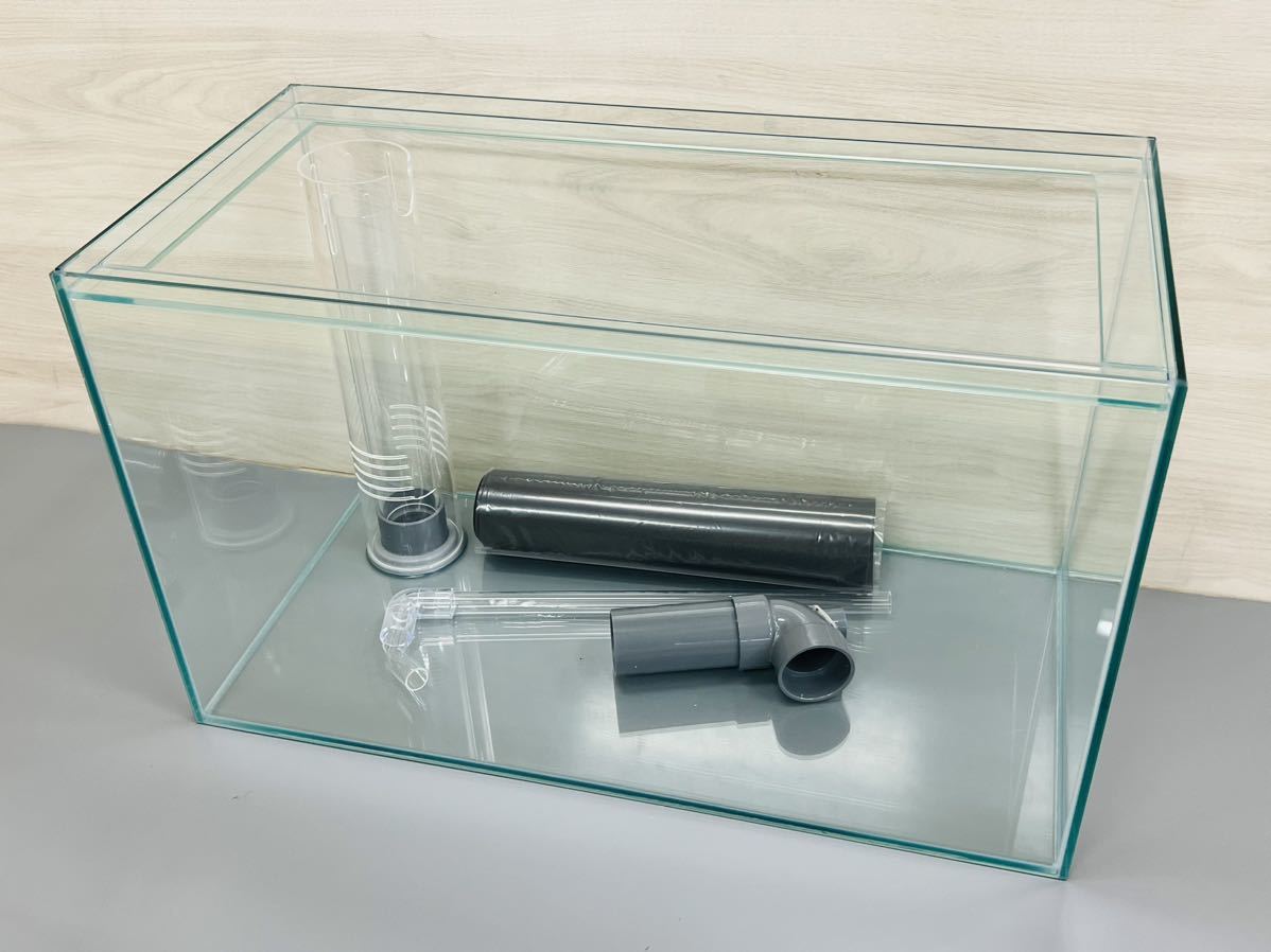 600×300×360オールガラスオーバーフロー水槽 フランジ加工付きです。