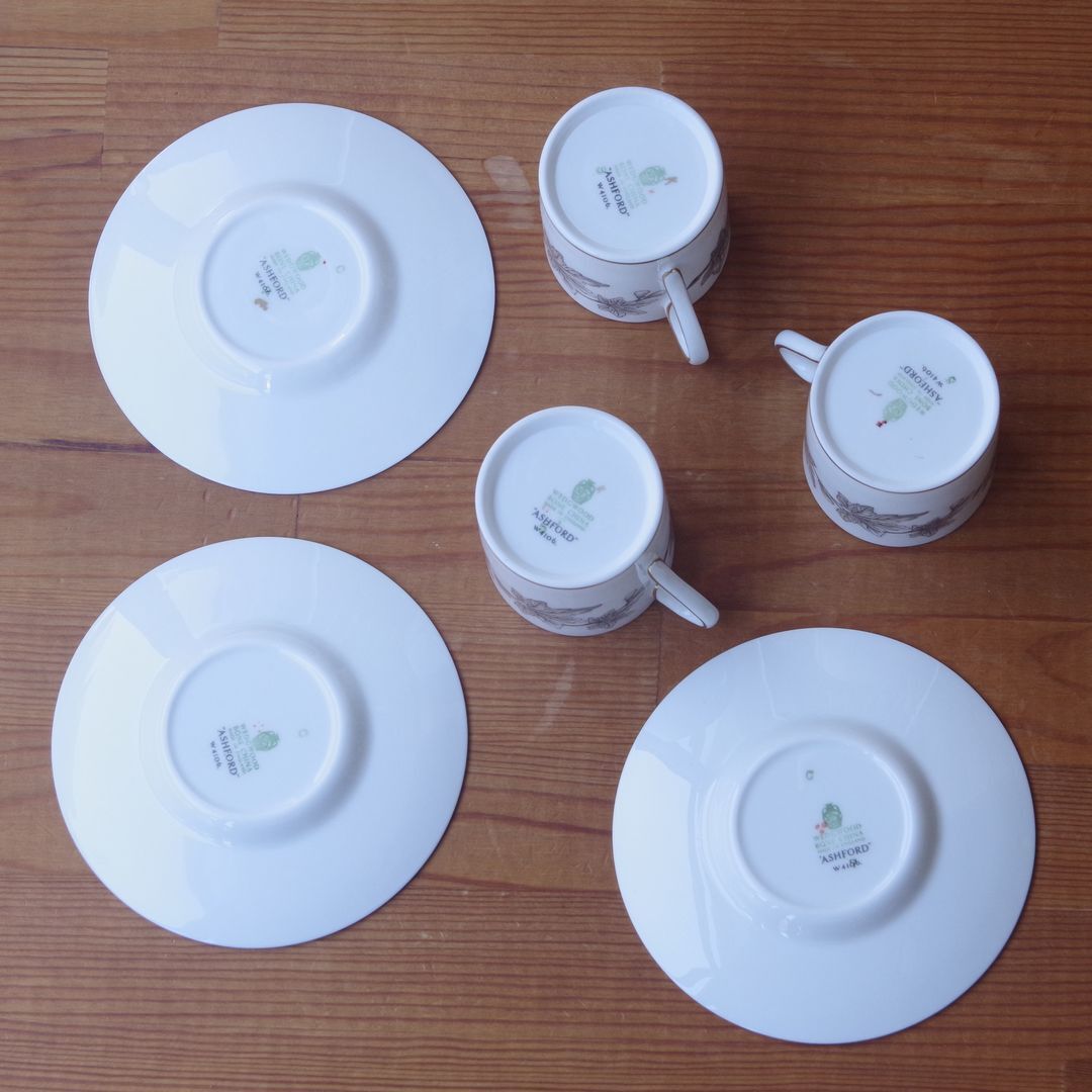 ウェッジウッド アシュフォード イチジク ボタニカル デミタスカップ&ソーサー #250225-1~3 ヴィンテージ 食器 陶器 Wedgwood Ashford CS