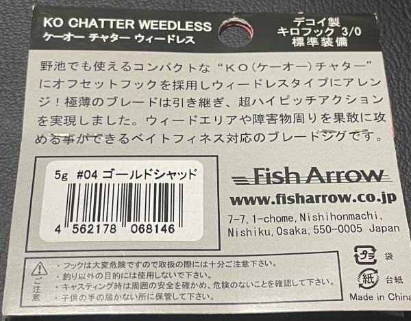 廃盤5g #04 ゴールドシャッド★KOチャター ウィードレス★KO CHATTER WEEDLESS★フィッシュアロー Fish Arrow チャターベイト