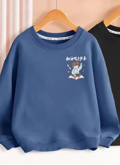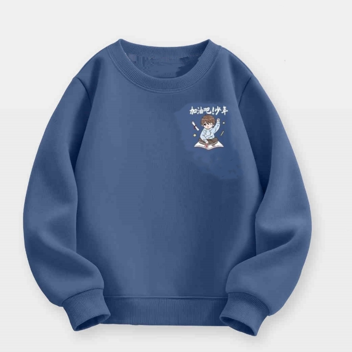 【新品】可愛い中国語メッセージ付き ブルーカレッジスウェット 男女兼用 130cm