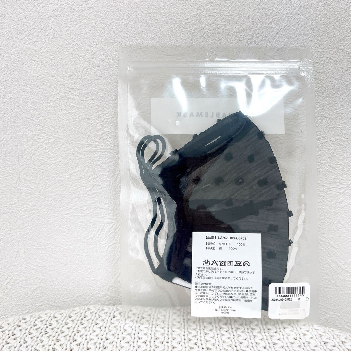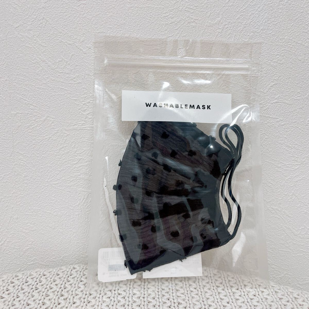 ★新品★ウィゴー ウォッシャブルマスクWEGOマスク布マスク コットンレース黒ブラック3Dプリーツマスク綿100%コットン水玉シフォン ドット