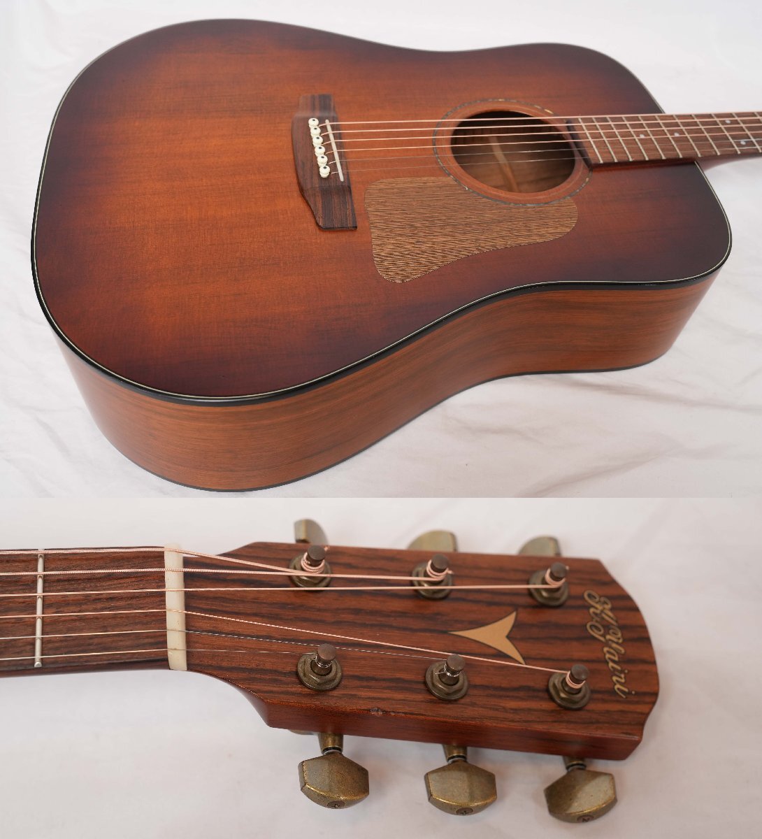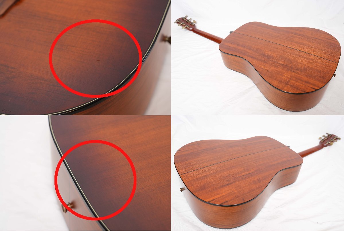 オーソドックスなドレッドノートスタイルのトップ単板ギター K.YAIRI YW-K7-OVA VS 2018年製です。国内で1本1本丁寧に製作されている品質の高いギターになります。 国産ならではの上質な材、丁寧な作りで長くご使用いただけると思います。音量もあり、中高域が特に心地よい上品なサウンドで、中級者~上級者にもおすすめの1本です。 ■■■以下わかる範囲でのスペックです。■■■ ボディ材 : スプルース単板トップ+オバンコールサイドバック ネック: Mahogany 指板 : Rosewood ピックアップ : 非搭載 重量 :約2.0kg ナット幅 : 約43.2mm シリアルナンバー : 7432× カラー : VS フレットは主観ですが約8部山程度残量があります。 ■商品の状態■ *数カ所当て傷、スレがありますが使用感は少なくコンディション良好です。 *ネックはほぼフラットで反りは感じられません。 *動作確認済みです。 ■付属品■ 社外ギグバッグ | ||