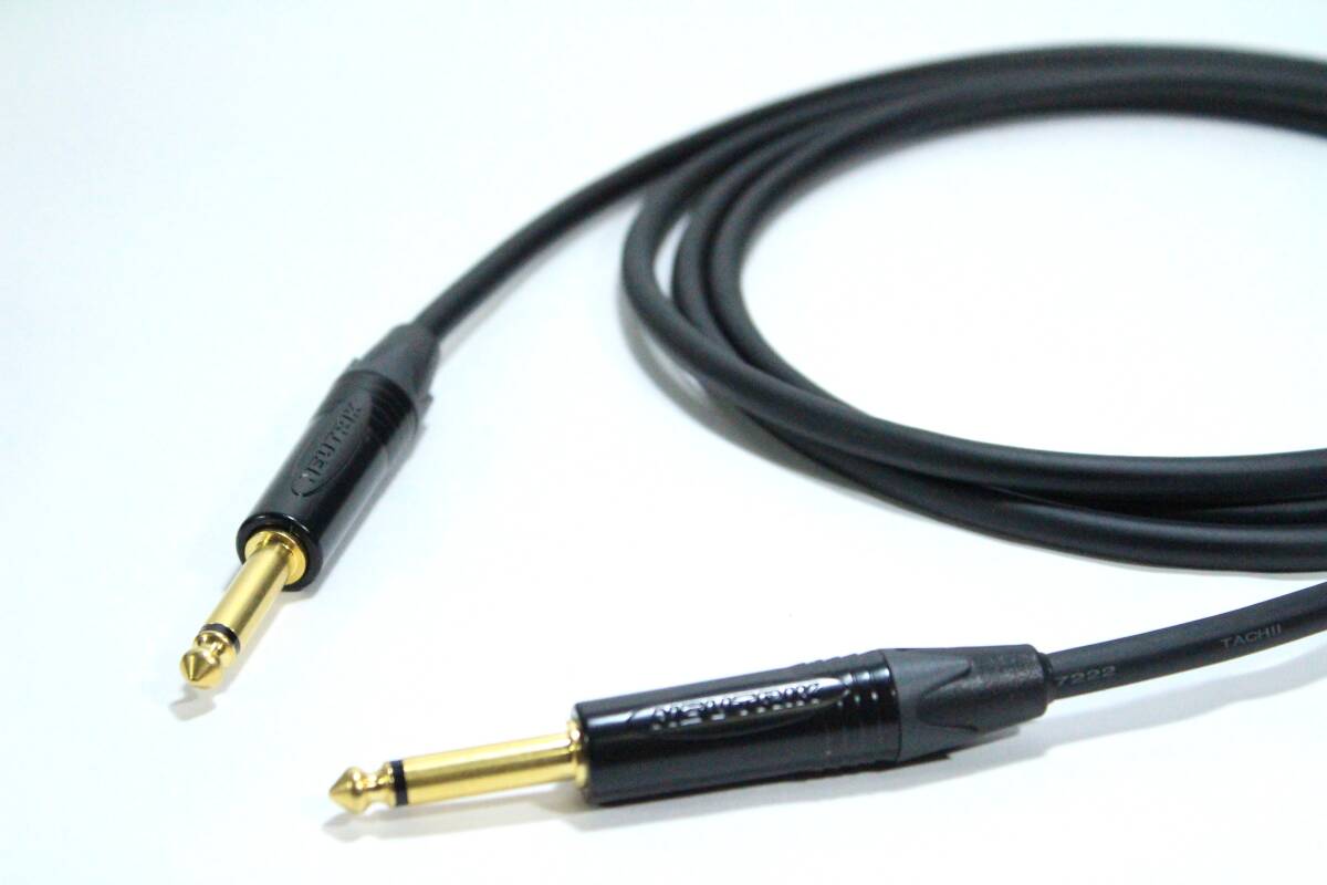 ケーブル線材にTACHII TPS7222を使用し、コネクタにはNEUTRIK製ゴールドメッキ6.3mmTSフォンプラグを組み合わせた楽器・オーディオ用シールドケーブルです。