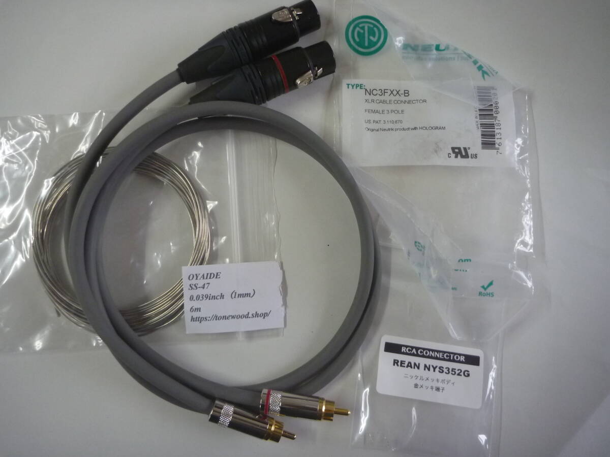 ケーブル線材に HITACHI MX-4E6 Vintage Cable(OFC)を使用したオーディオ用変換ケーブルとなります。パーツや半田には定評のあるブランド品を使用しています。同一仕様のケーブルが二本セットのペアでの販売となります。