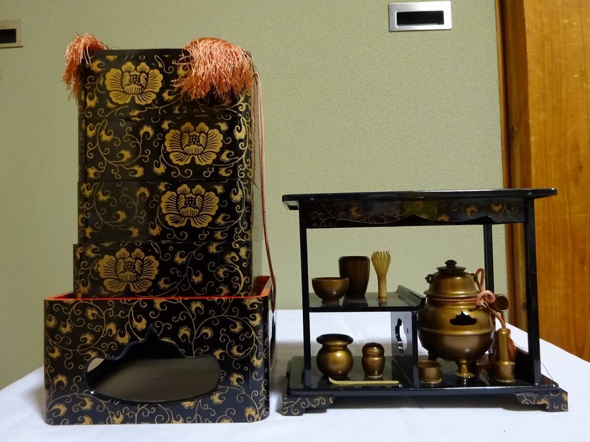 | 中古現状品 ひな人形/雛飾り/昭和レトロ/台子/茶道具/御重箱 セット |