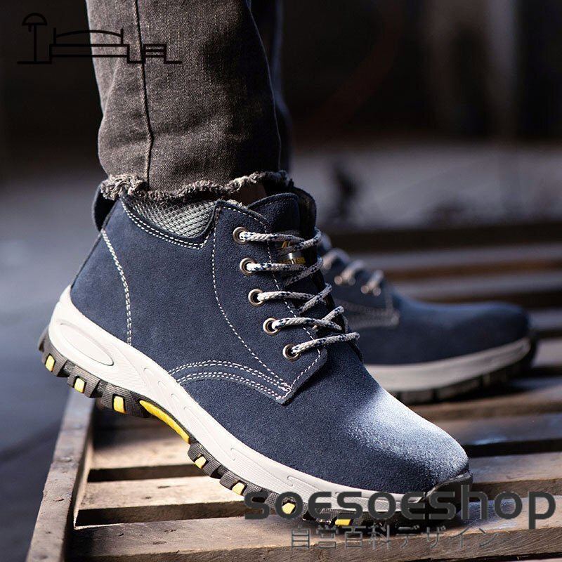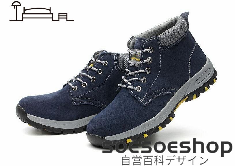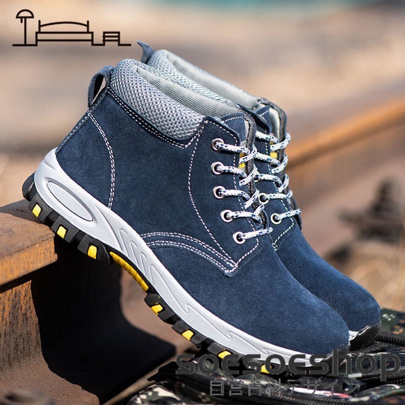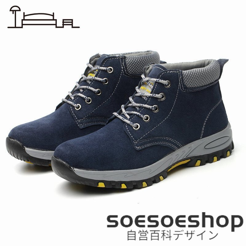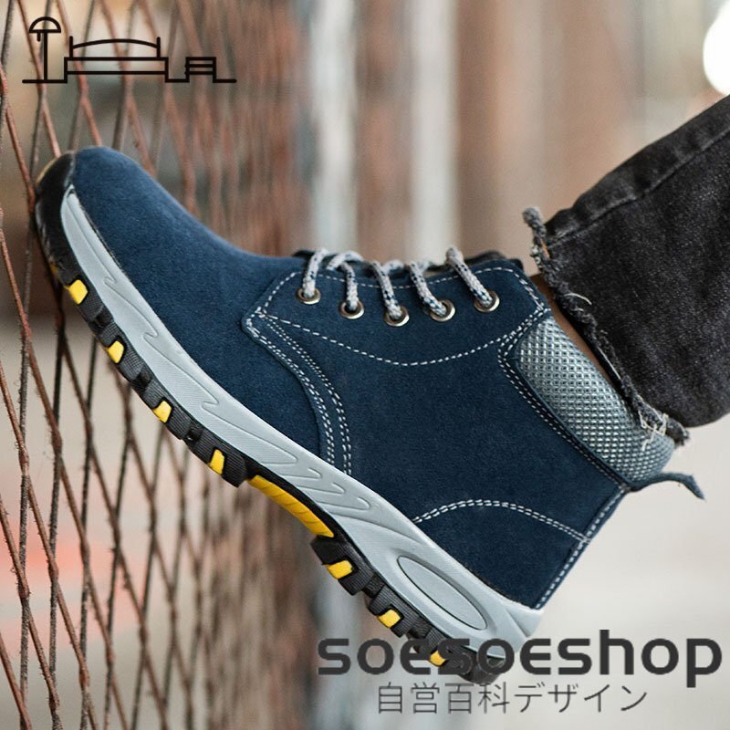 作業靴メッシュ安全靴おしゃれメンズレディース踏み抜き防止滑りにくい通気軽い作業用品スニーカー女性サイズ対応 22.5cm~27.5cm ブルー