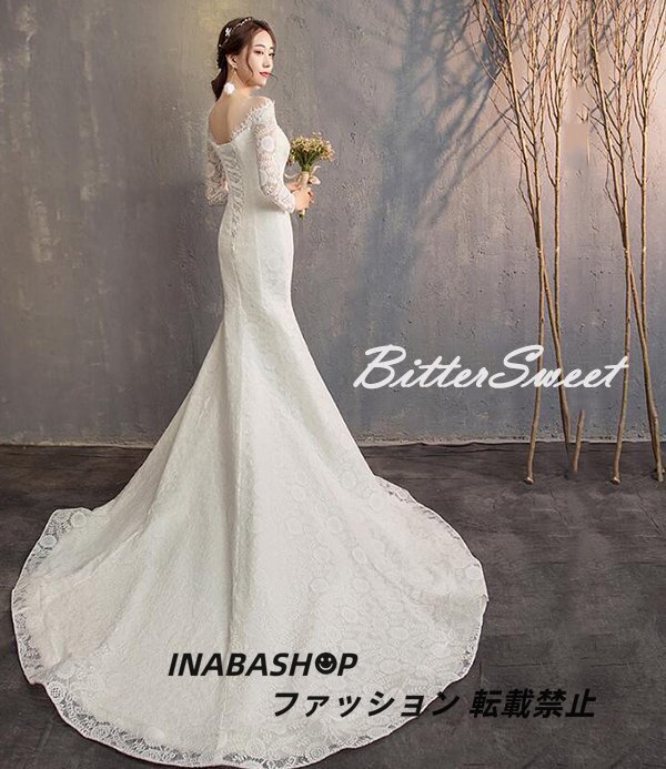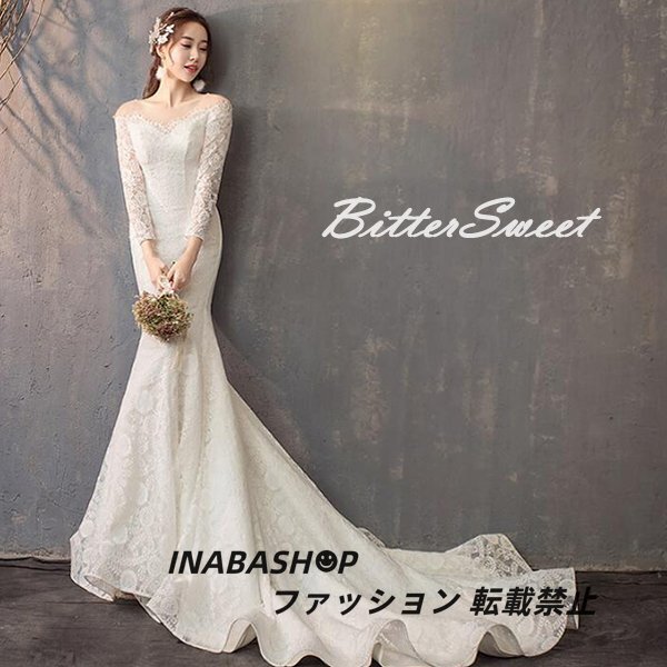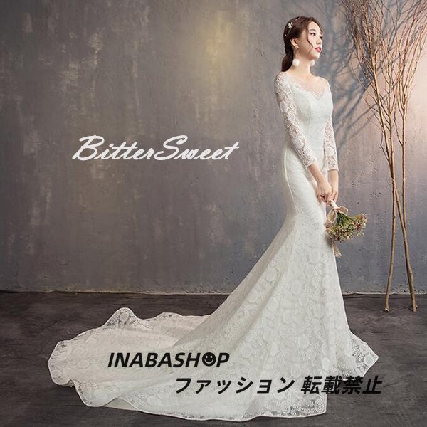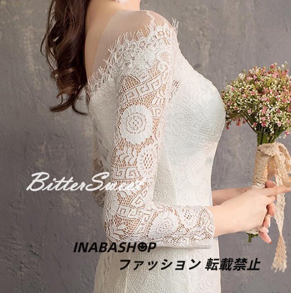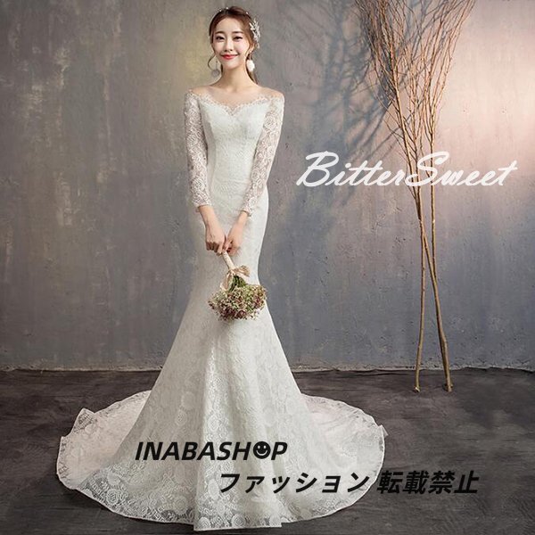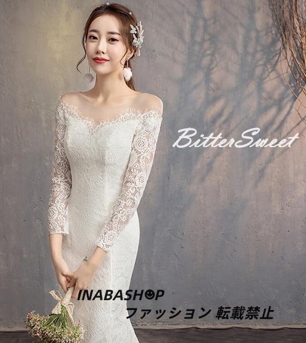 ウェディング ドレス 長袖 ウェディングドレス ウエディングドレス マーメード マーメイドドレス 白 花嫁ドレス 二次会ドレス前撮り 結婚式