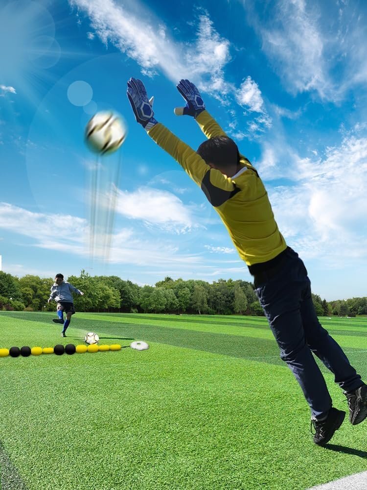 反射神経と反応時間 - ディフレクターをゴール前に置き、キーパーをテストする準備を整えます。ボールの方向が変わるときの反射神経と反応時間を鍛えましょう。
