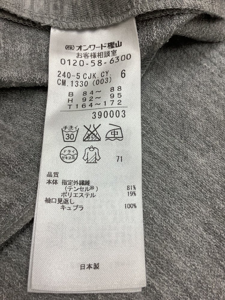 | 管理番号:133423 iCB 杢グレー カットソー生地ジャケット 表示サイズ:11 実寸(参考)