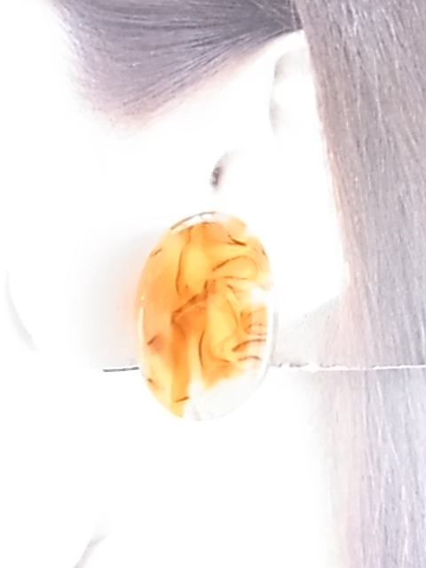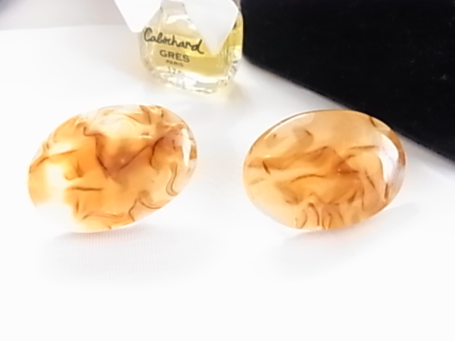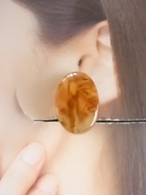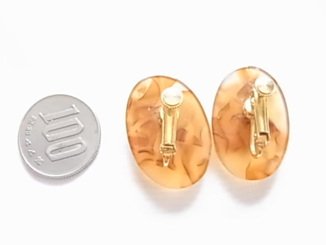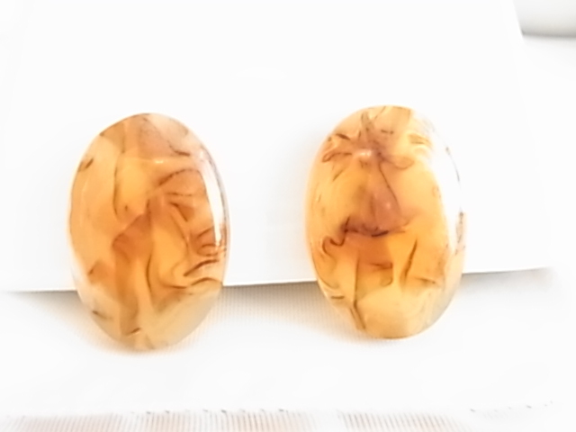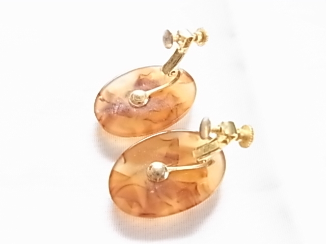 ビンテージ/ヴィンテージ 楕円形のゴールデンヒーラー調 素材不明 和モダンテイスト 和装にも素敵昭和レトロのイヤリング■