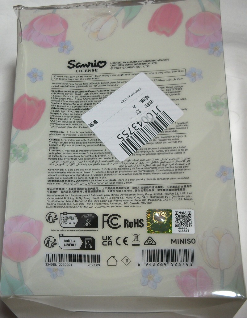 海外製クロミのナイトライトです。電池式。明るさの調節はできません。