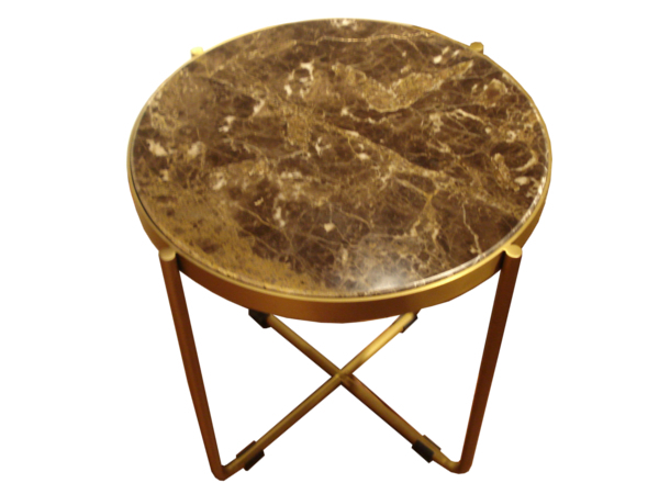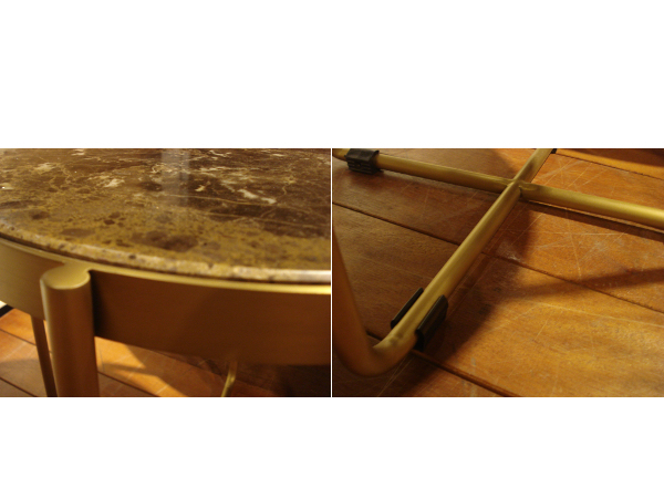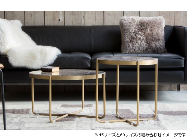 濃色系の大理石と金属のフレームを組み合わせた、マニッシュなコーヒーテーブル。無機質な雰囲気は、ビンテージ系・インダストリアル系のインテリアにもマッチ。
