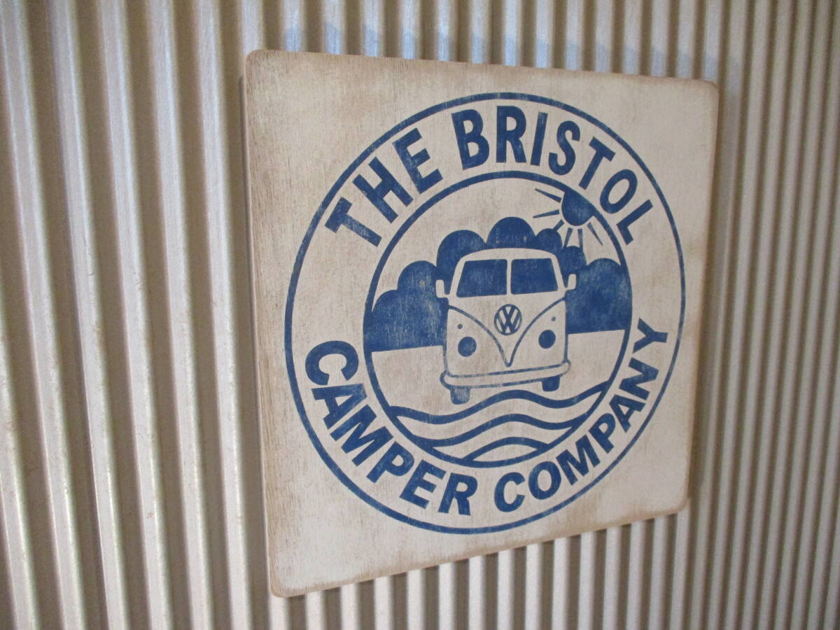 インテリア木製看板 THE BRISTOL CAMPER COMPANY検)VOLKSWAGENガレージカスタムUSAUK60s70s80s