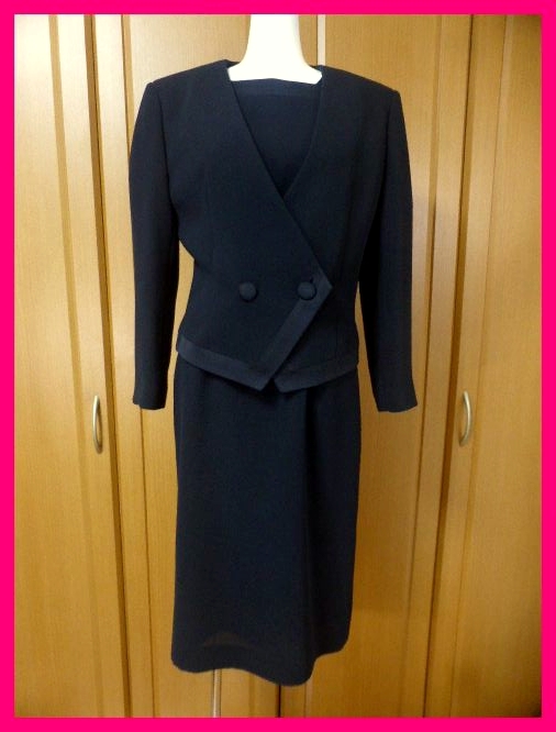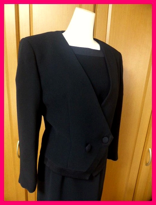 | 商品説明 | ★ブランド/商品名:フランセーノ ★色:ブラック (お使いのモニタやブラウザ環境によって、画像の色味が異なって見えることや主観による色名の言い回しの誤差についてはご容赦ください) ★素材:ポリエステル 裏地:キュプラ ★サイズ:メーカー表記:9 写真は9号ボディに着せて撮影しているので、サイズ・フィット感の参考にしてください。 実寸平置き:着丈(後中心)49・袖丈51.5・肩幅(肩端~肩端の直線)40・身幅46.5×2cmくらいです。 ★程度・状態:主観で 80/100 多少の使用感はあるかもしれませんが、気になるものではないと思います。 汚れ/キズ/色褪せ等特筆が必要な箇所は特にありません。 お安く出品しますので、お渡し後は完全ノークレーム・ノーリターンでお願いします。 ※匂いの感じ方は個人差があります(当方あまり嗅覚がよくないようです)※ ※検品した状態を正直に記載していますが、匂いについてと多少の見落としについてはどうぞご容赦ください※ オールシーズン対応素材。 ワンピースの衿とジャケットの裾にマットなブラックの別布を使ったおしゃれデザイン。 ジャケットは肩パッド入り。 ワンピースウエストのリボンはベルト共布で作られ縫い付けられています。 ベルトに加えて、前後8本ダーツできれいなシルエットを実現しています。 写真のようにベルトを使用しなくても十分にきれいなシルエットです。 当出品物は送料は出品者負担(送料込み)です。 管:S3181 22/10/07 |