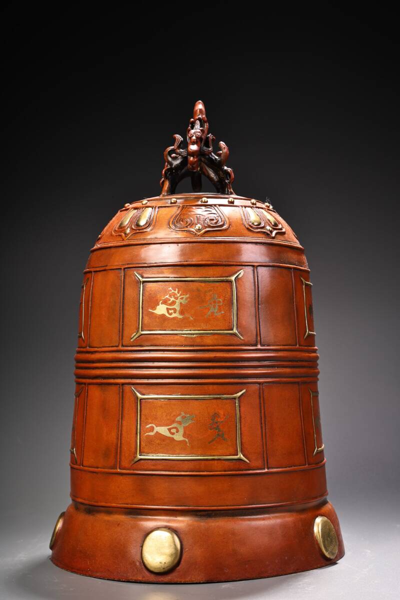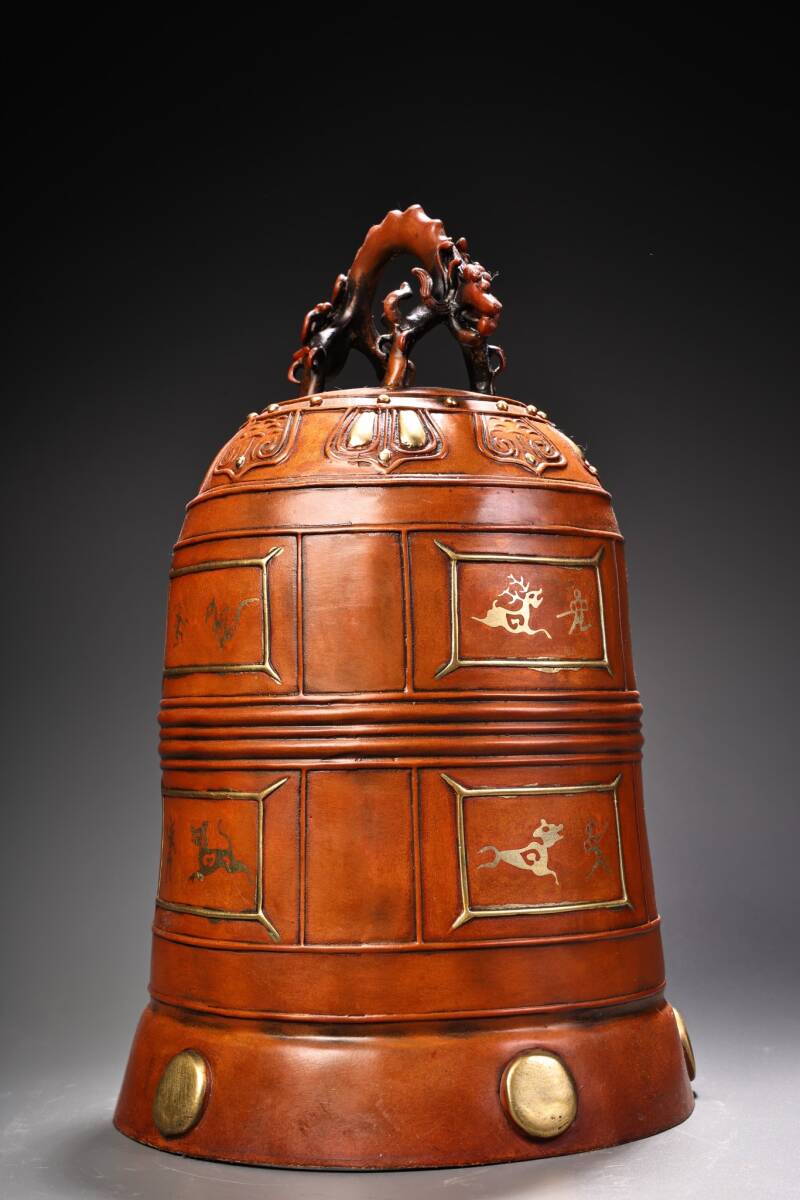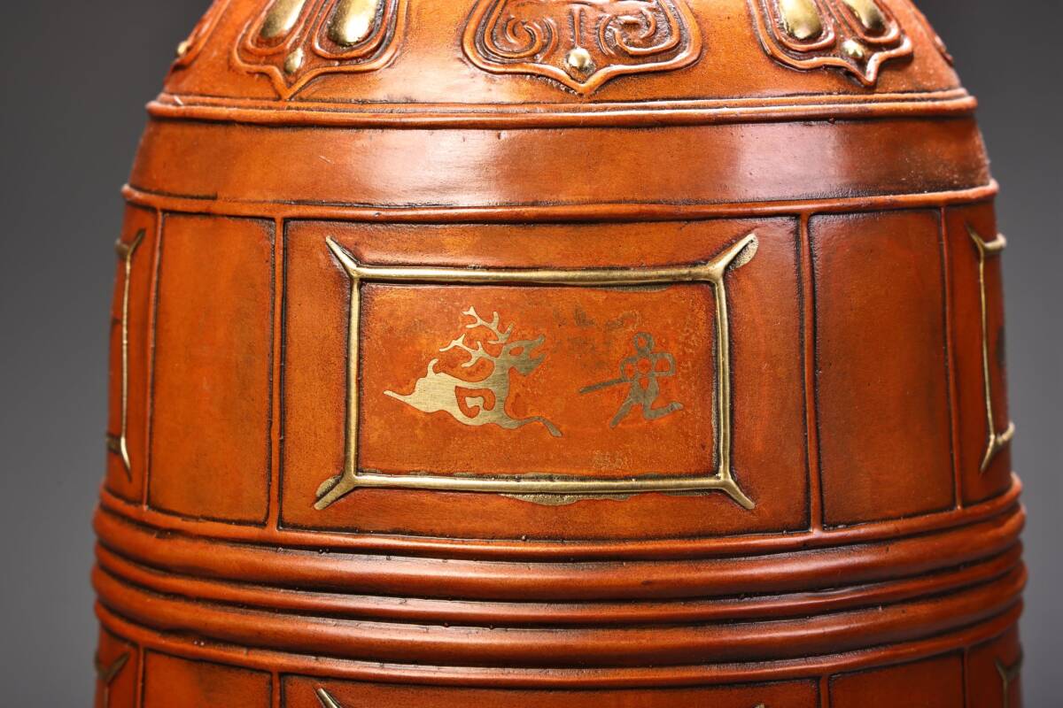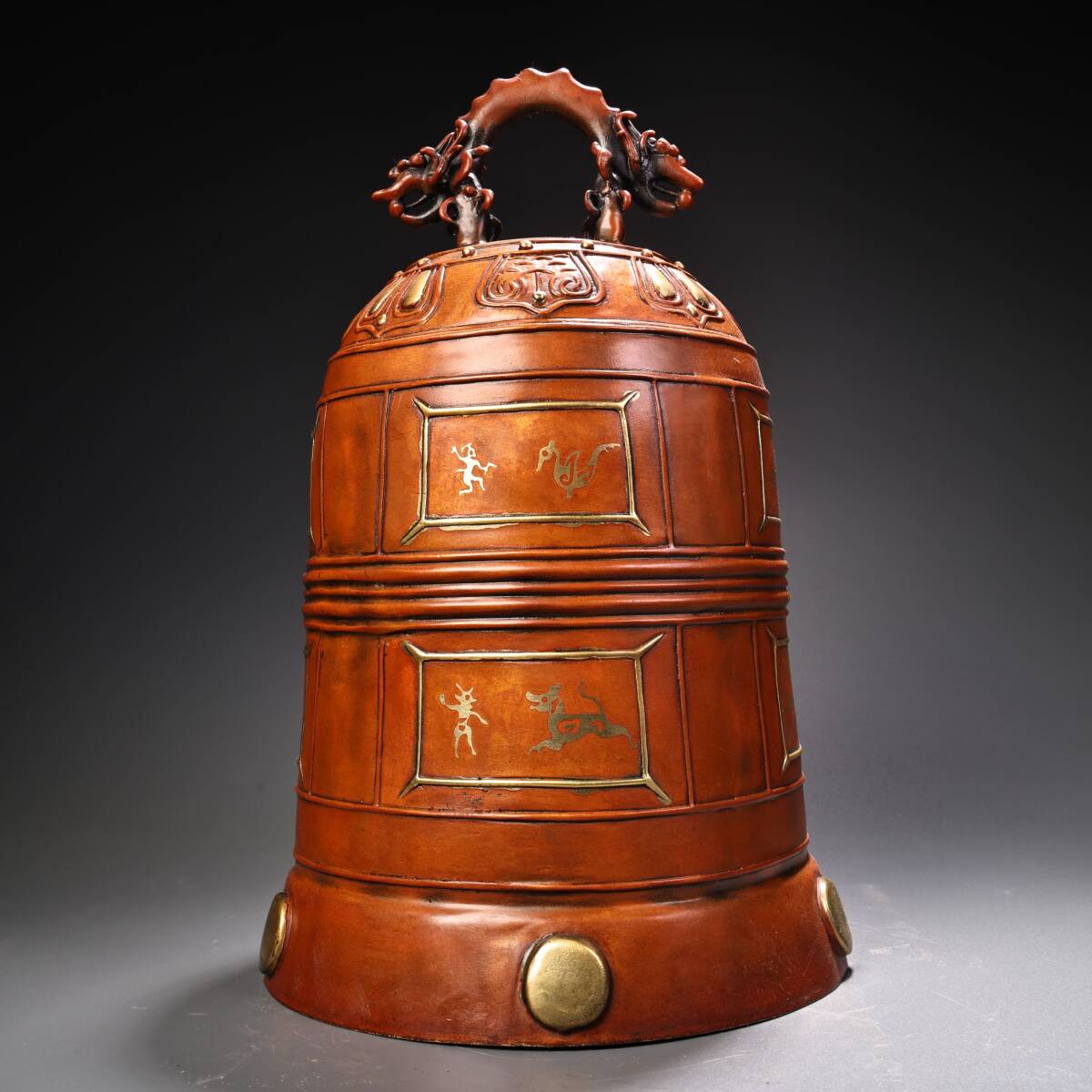 唐物 清代 純銅 掛鐘 紅銅 高浮彫 鏨刻工藝 塗金塗銀 中国美術品 時代物 D63