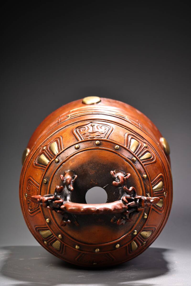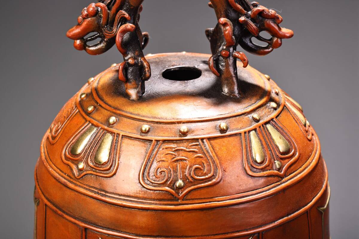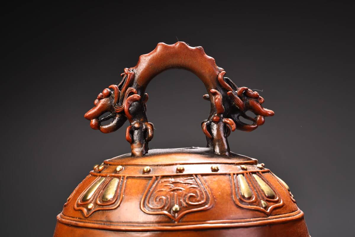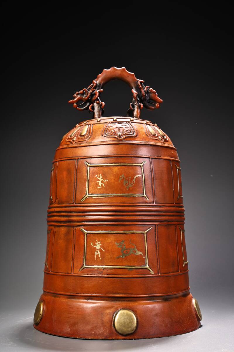 唐物 清代 純銅 掛鐘 紅銅 高浮彫 鏨刻工藝 塗金塗銀 中国美術品 時代物 D63