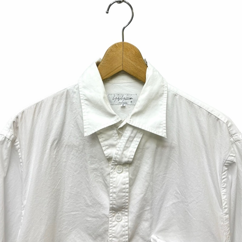 YOHJI YAMAMOTO POUR HOMME 21AW COTTON BROAD CHAIN STITCH BROAD DESIGN COLLAR BLOUSE ロングシャツ 長袖 2 白 ホワイト HX-B55-005