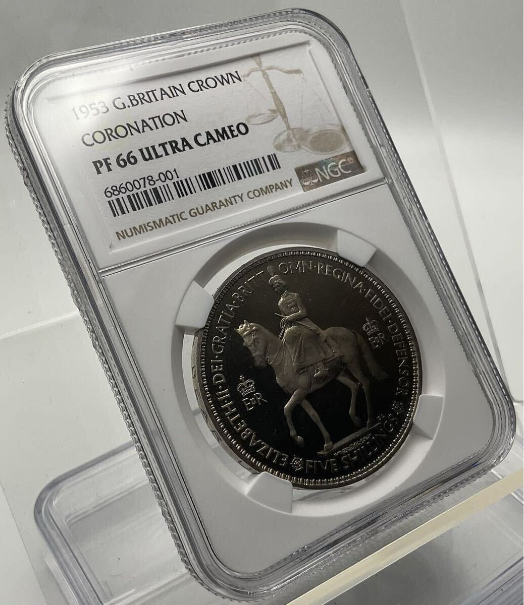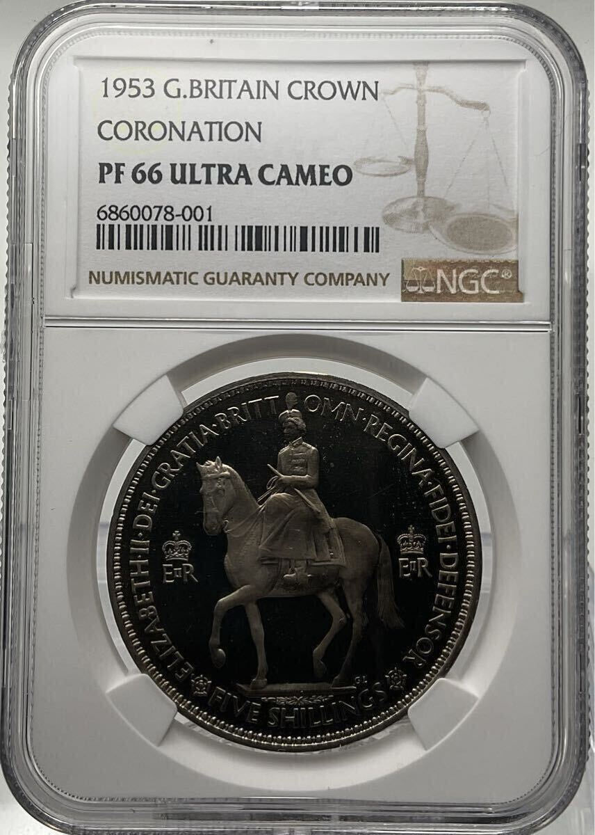 稀少品 1953 イギリス クラウン 白銅貨 エリザベス2世 戴冠記念 NGC PF66 Ultra CAMEO Crown アンティークコイン 投資 コレクション