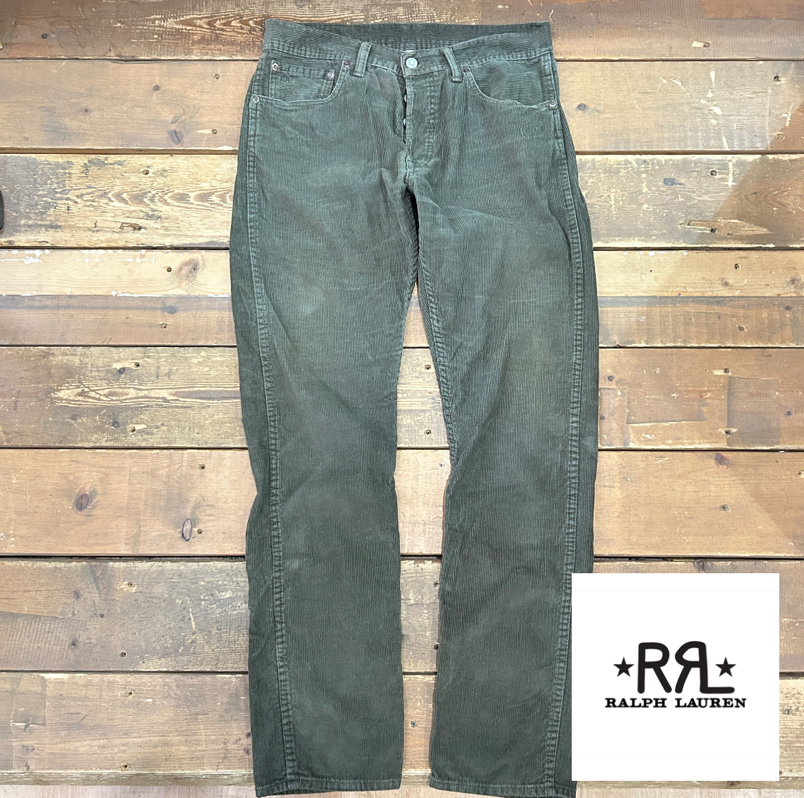 RRL / ダブルアールエル DOUBLE RL SLIM FIT テーパードコーデュロイパンツ W31L30 カーキグリーン ラルフローレン USED