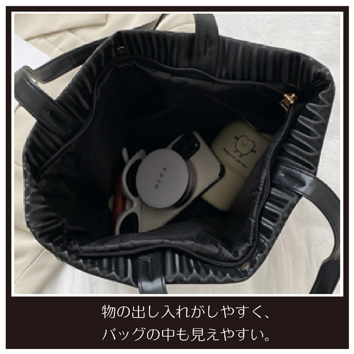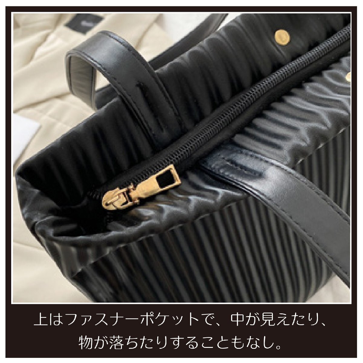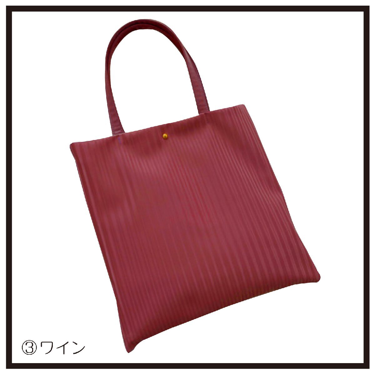 必要な物だけ持ち歩くのに便利なハンドバッグはデイリー使いやちょっとしたお出かけだけでなく旅行の際のサブバッグなどにも活躍してくれる優れモノビジネスシーンでの書類を入れたりお稽古事などにも。フェミニンな印象の素敵なバッグです。ファスナー付きで中身を落とす心配もない安心設計。表面にさり気なく、プリーツになっている生地でデザイン性のあるオシャレなバッグです。サイズ:縦 約35cm・横 約35cm素材:合成皮革カラー:ワイン