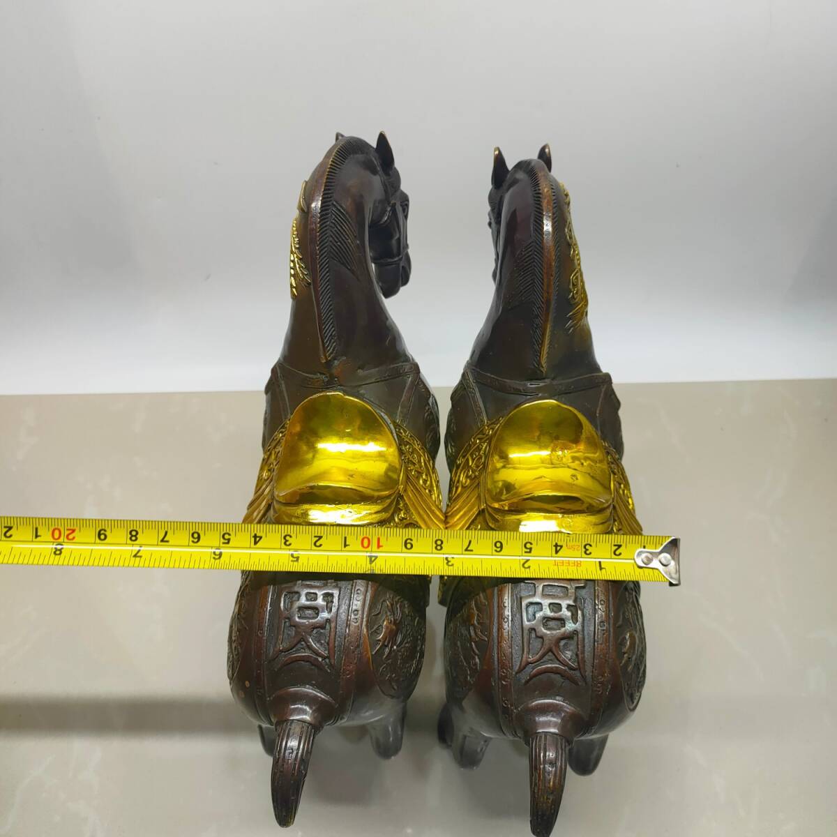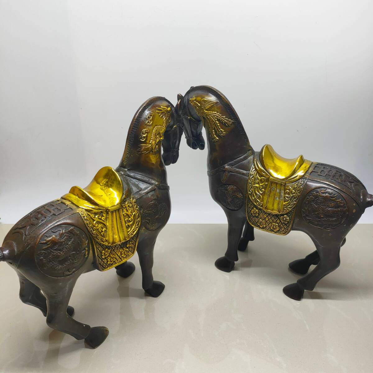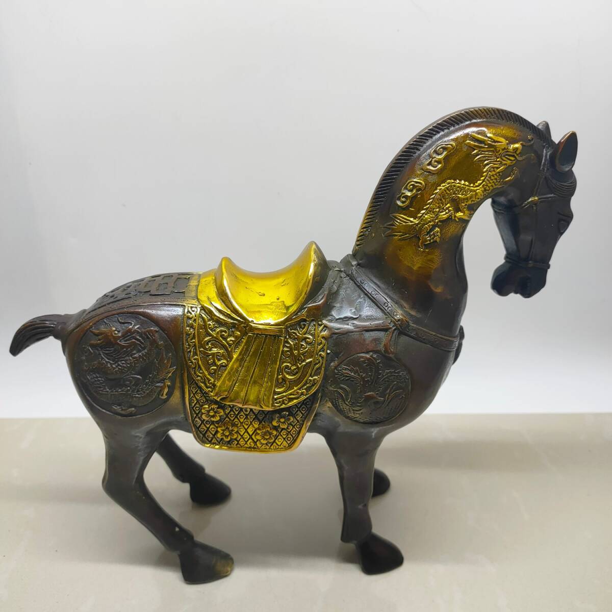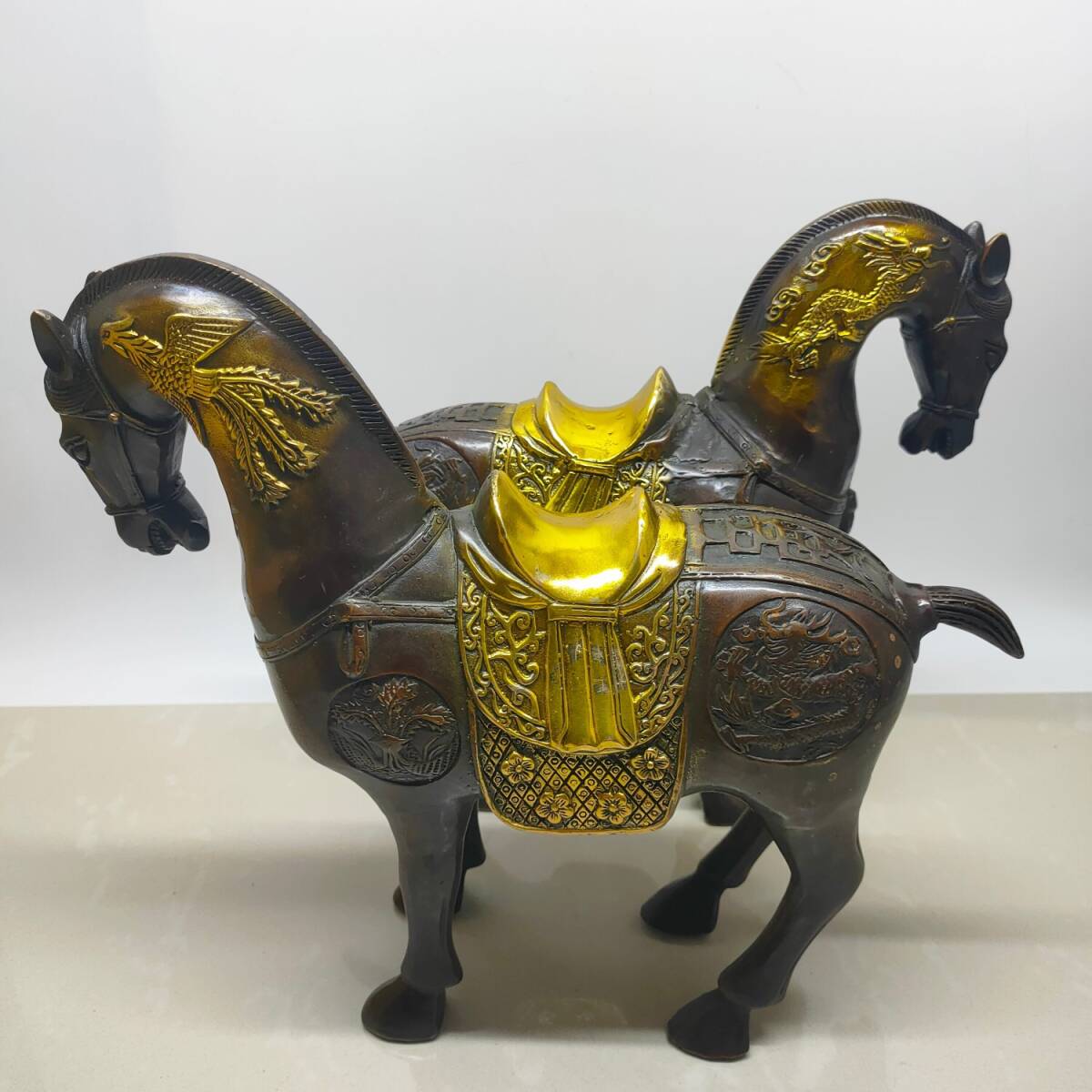 | 【蔵友館蔵品・黄銅製・塗金・龍鳳紋馬一對】・希少珍品・置物・賞物・中国時代美術 |
