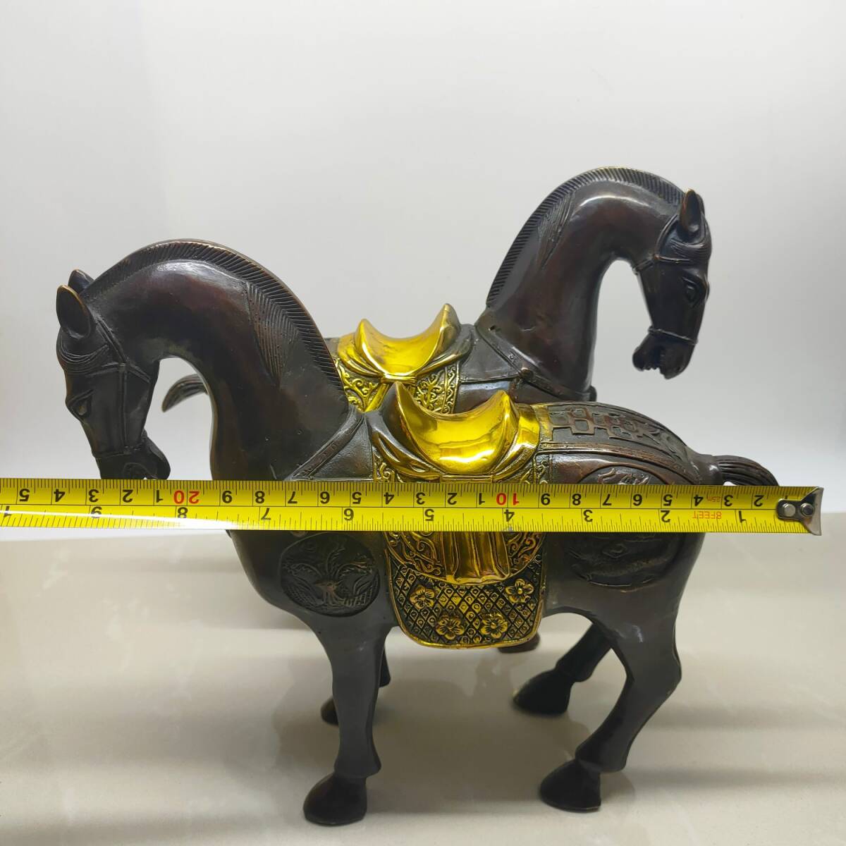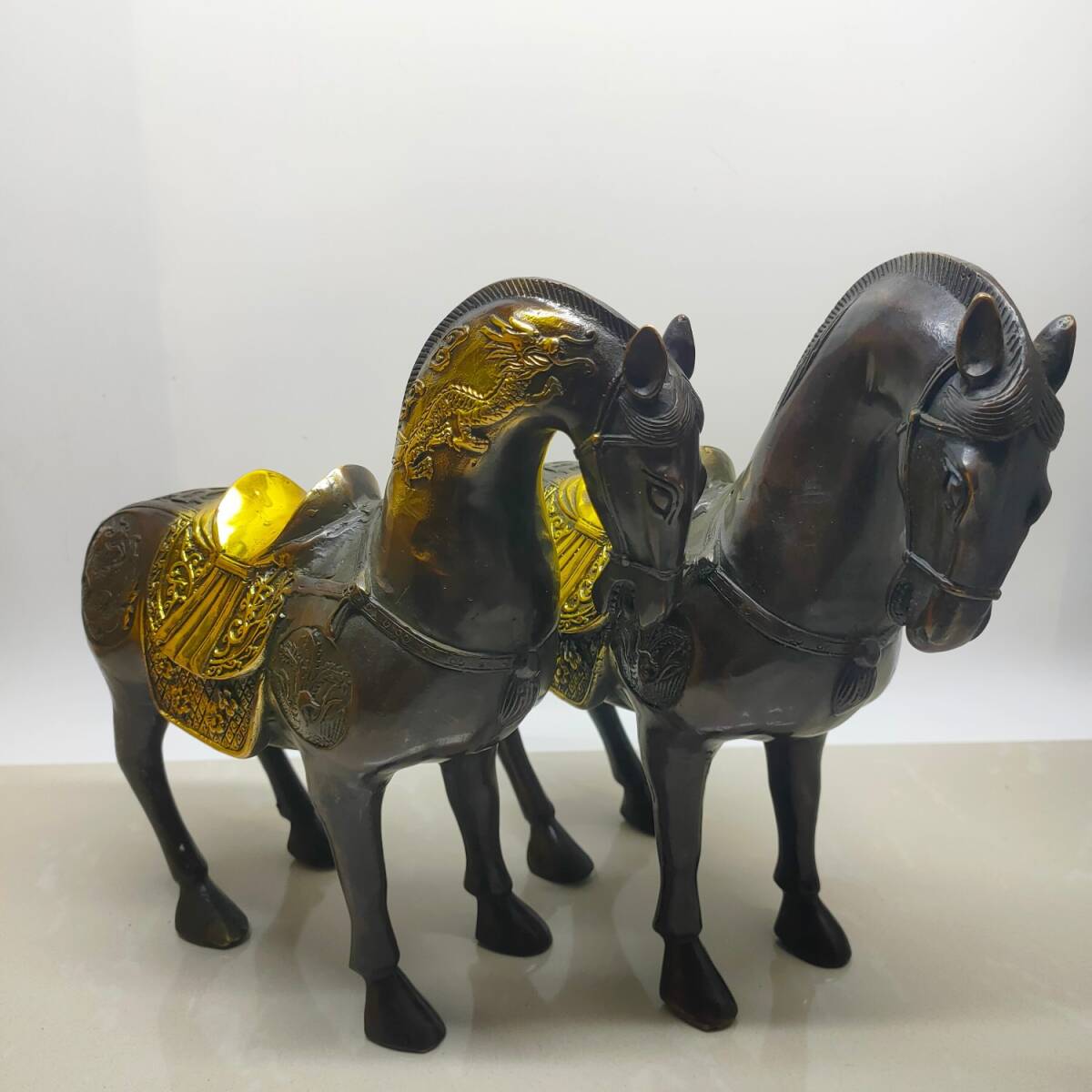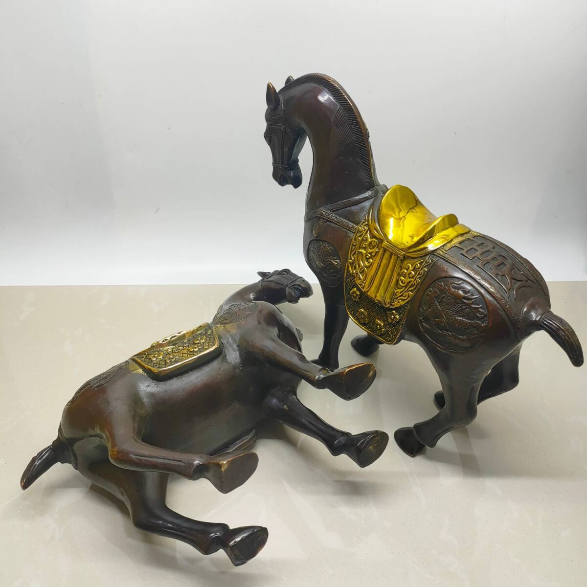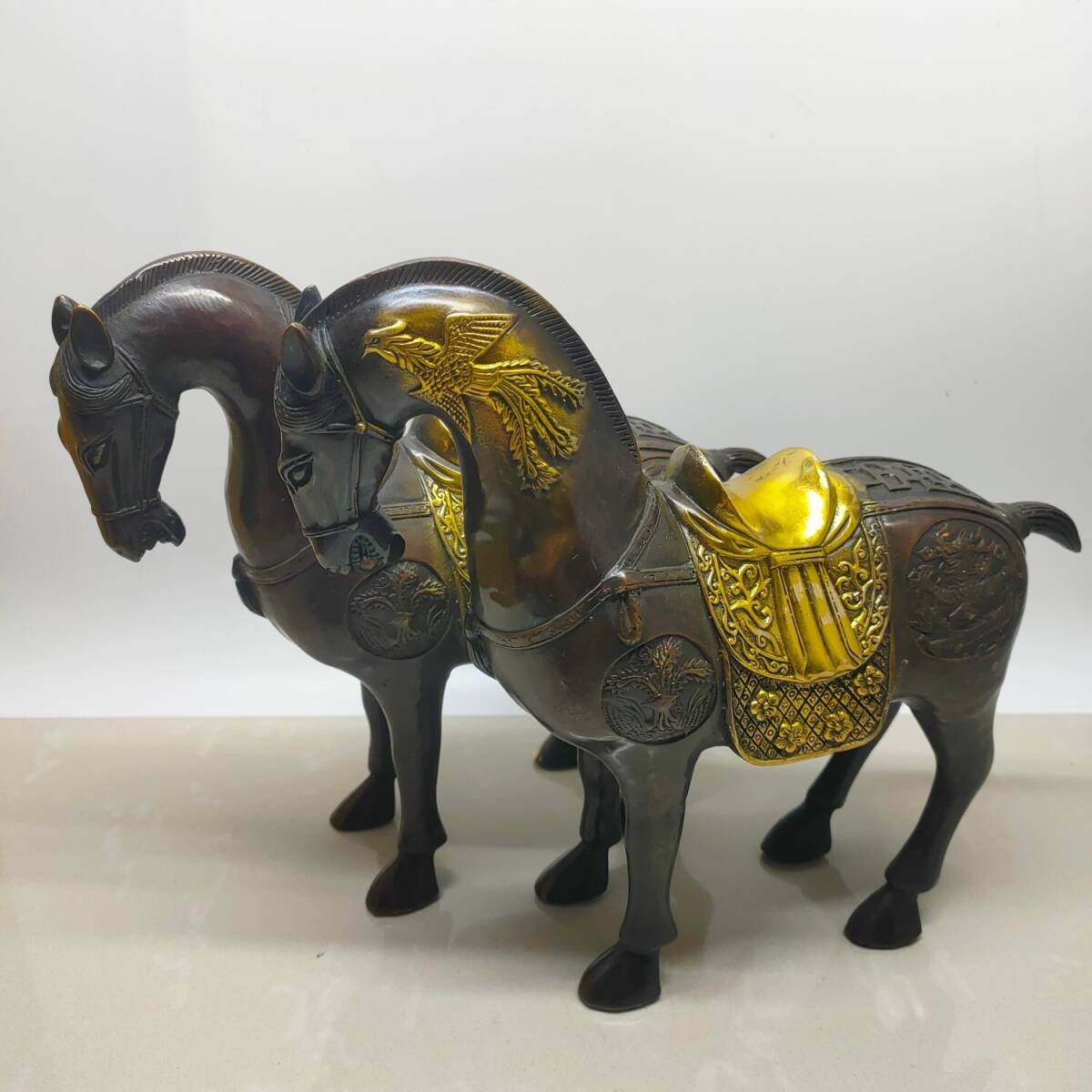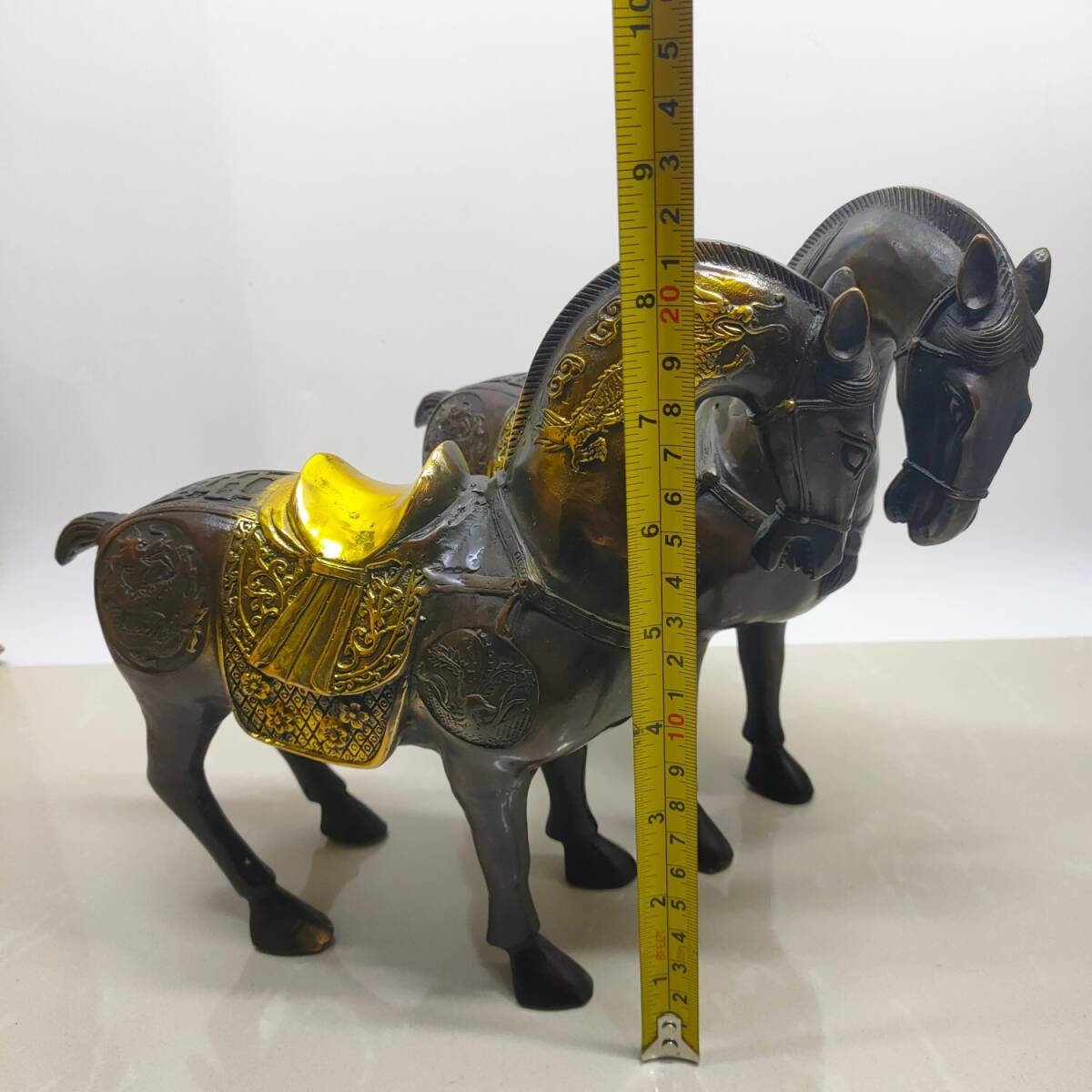 | 【蔵友館蔵品・黄銅製・塗金・龍鳳紋馬一對】・希少珍品・置物・賞物・中国時代美術 |