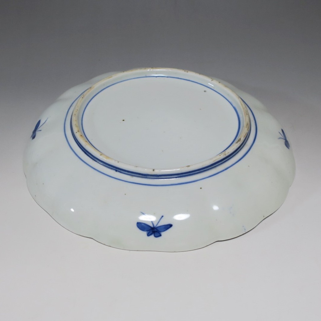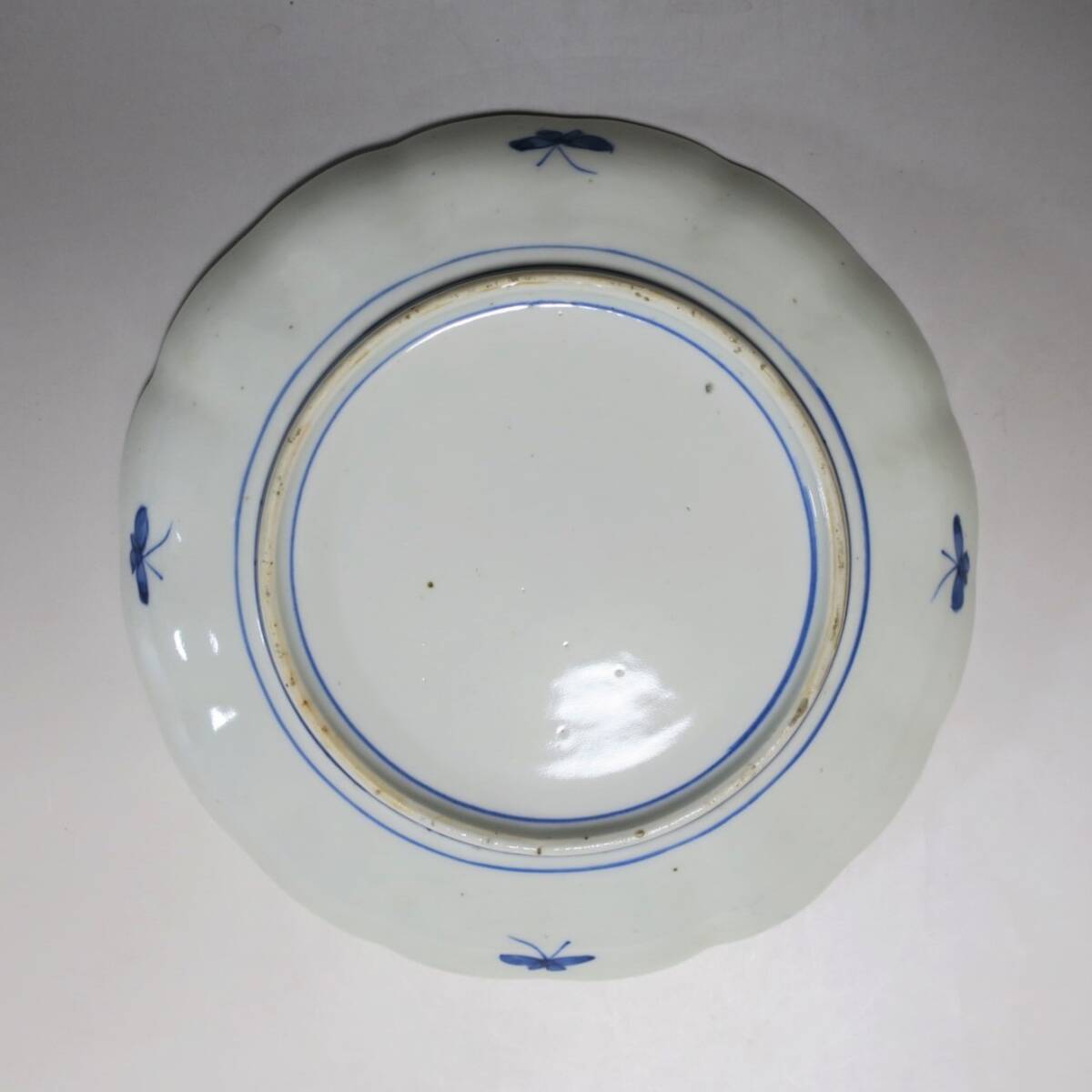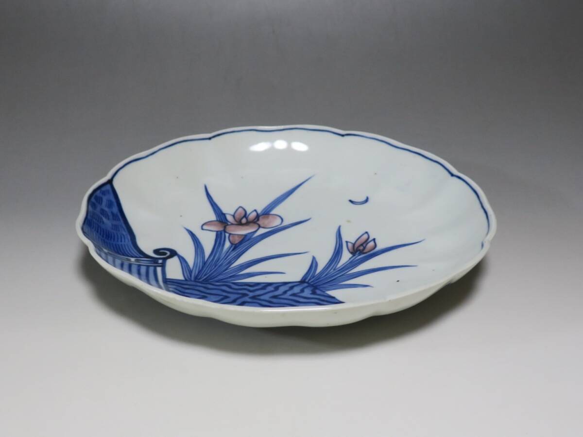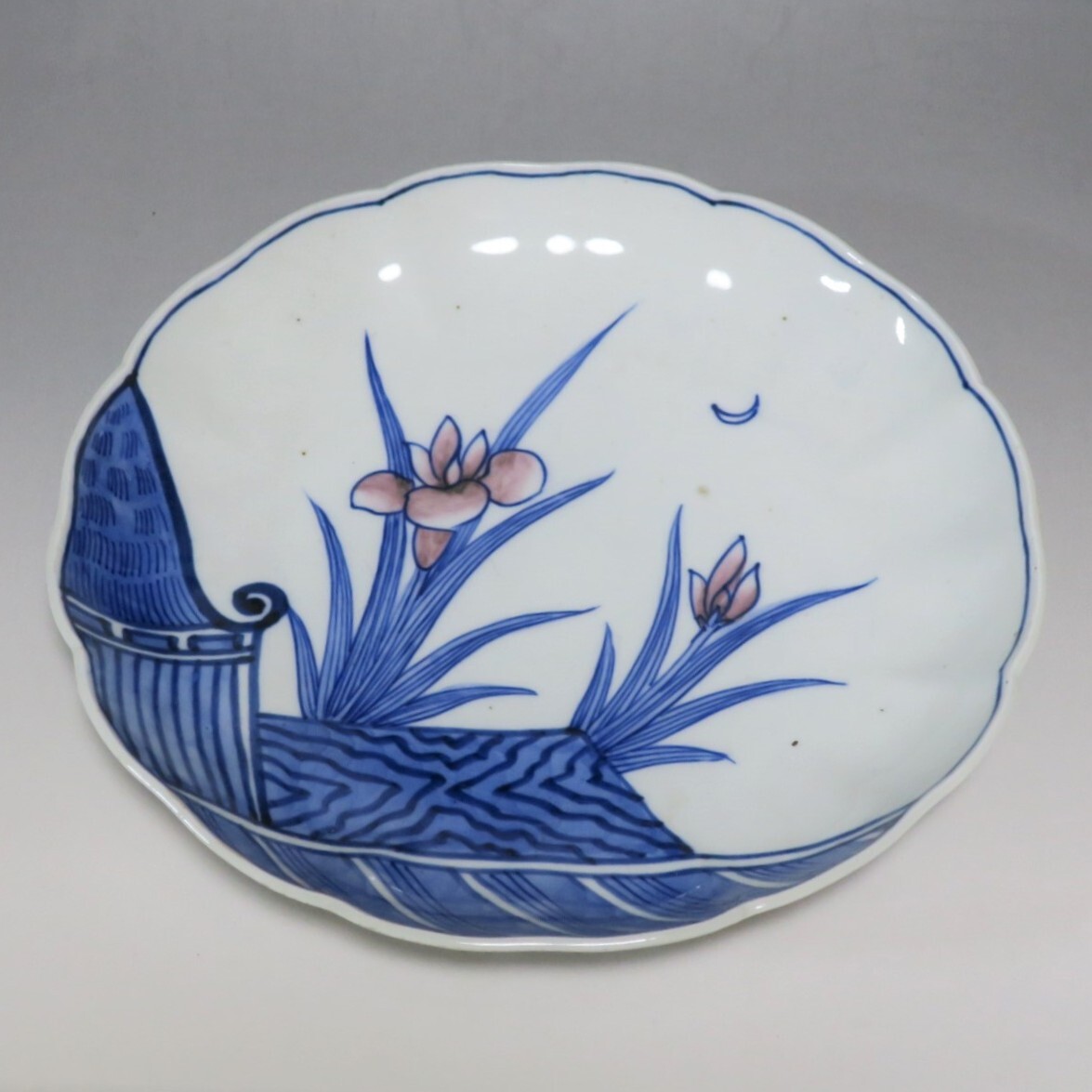 伊万里焼 染付色絵 月に菖蒲 庭園 邸宅図 七寸皿【B】 和食器 明治時代