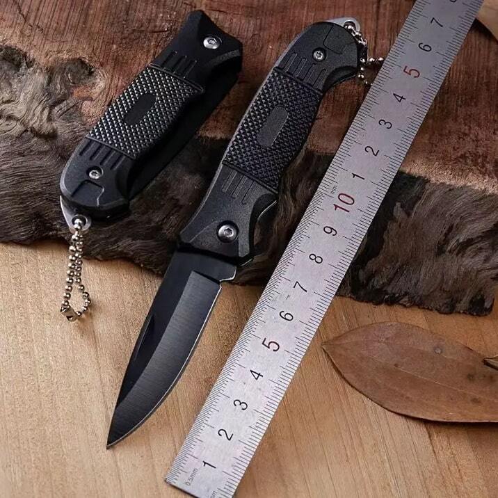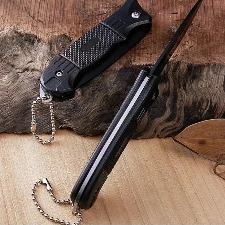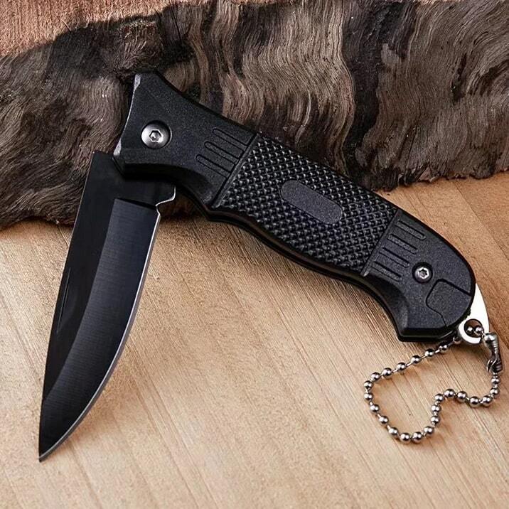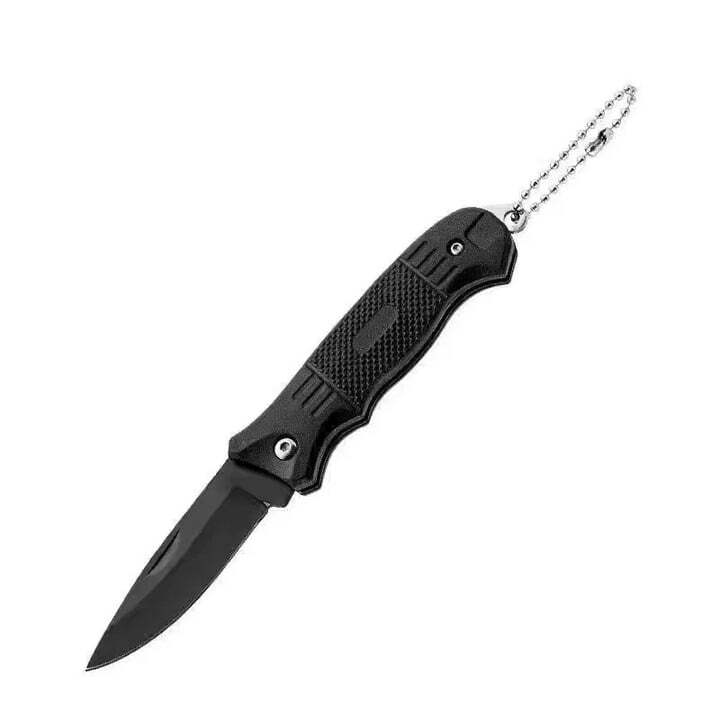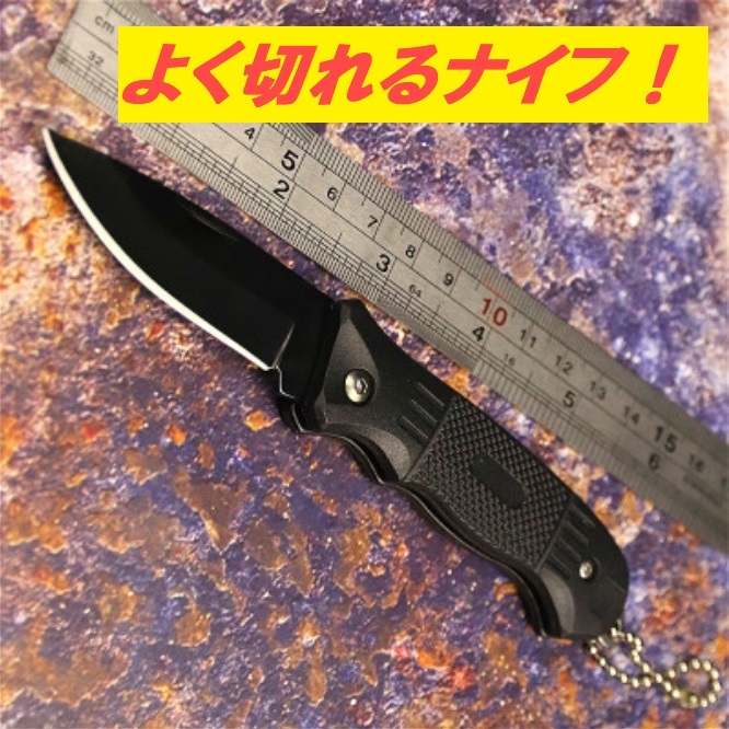 コンパクトな折りたたみナイフ! ポケットナイフ サバイバルナイフ 小型ナイフ キーチェーン付き! かっこいいブラック!