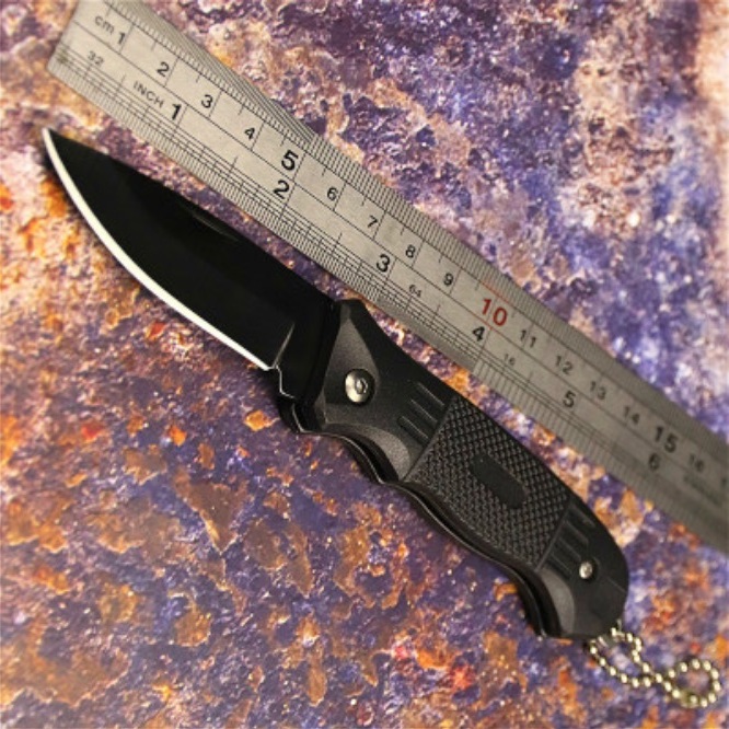 折りたたみナイフ ポケットナイフ サバイバルナイフ 小型ナイフ ブラック キーチェーン付き!