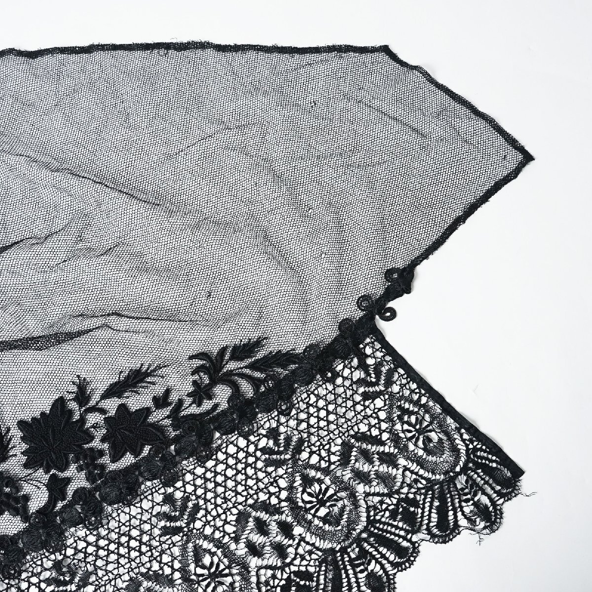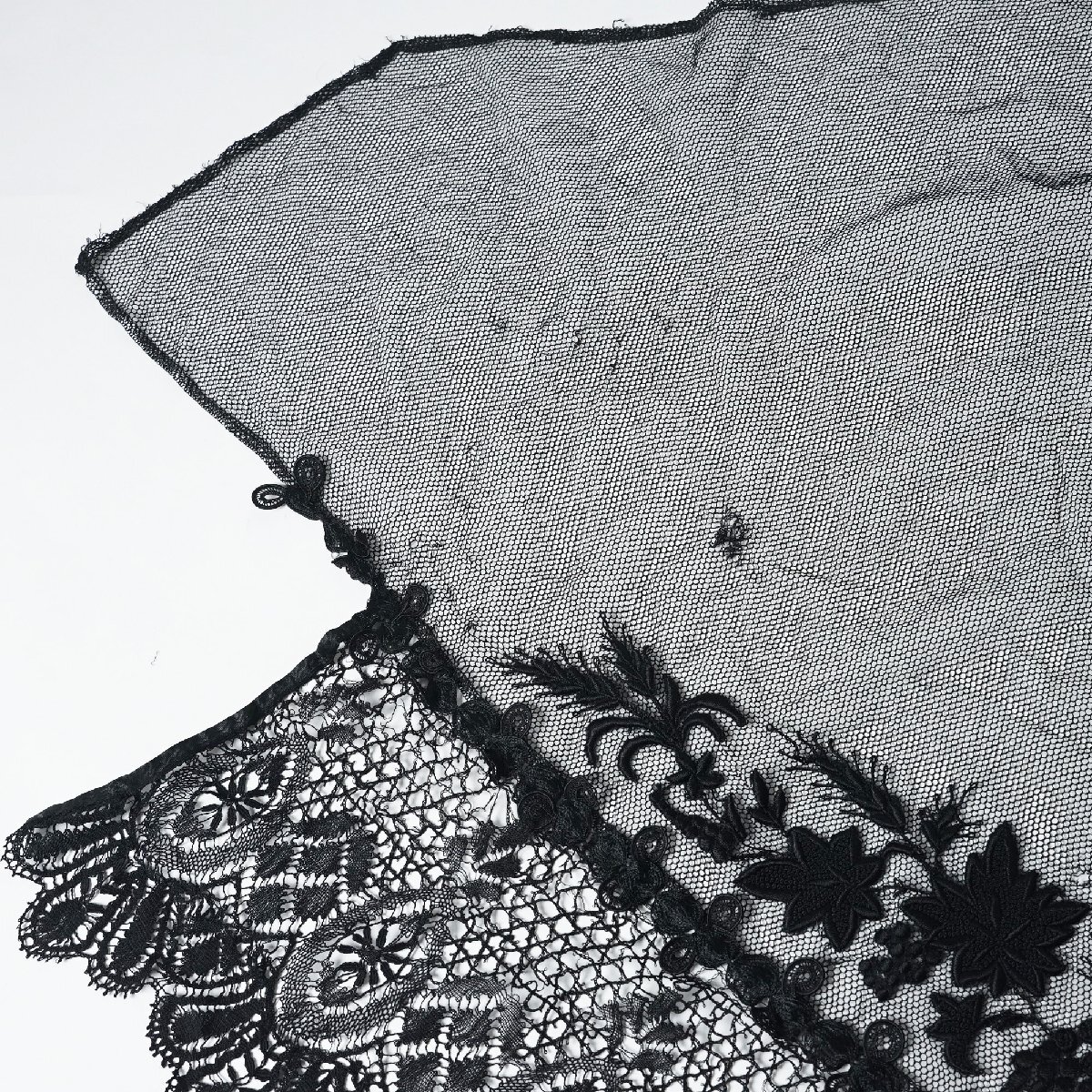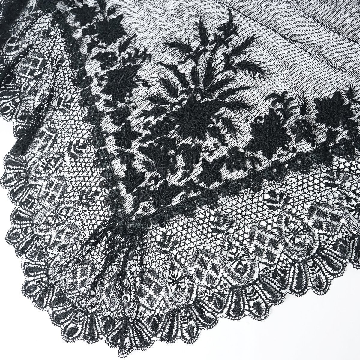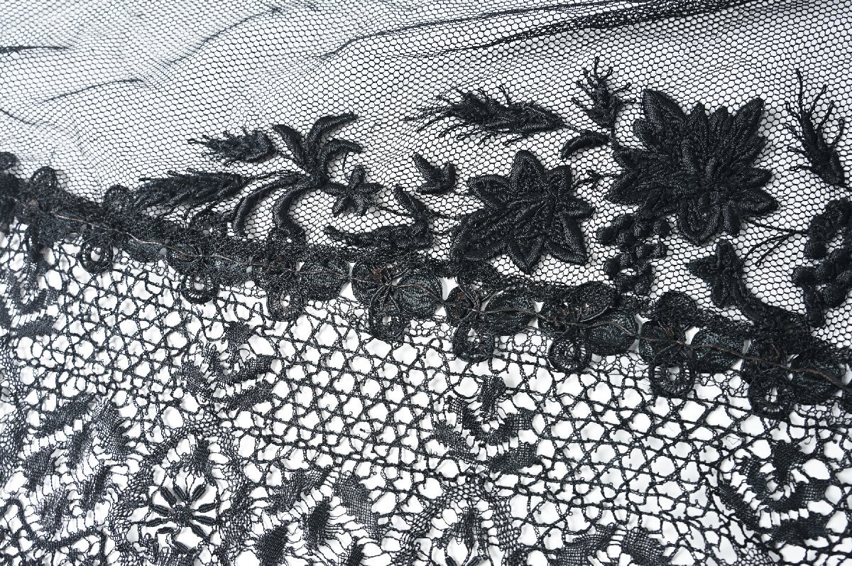 フランス アンティーク レース ベール ショール 黒[E380]