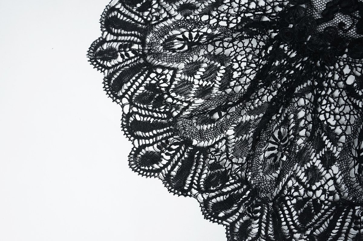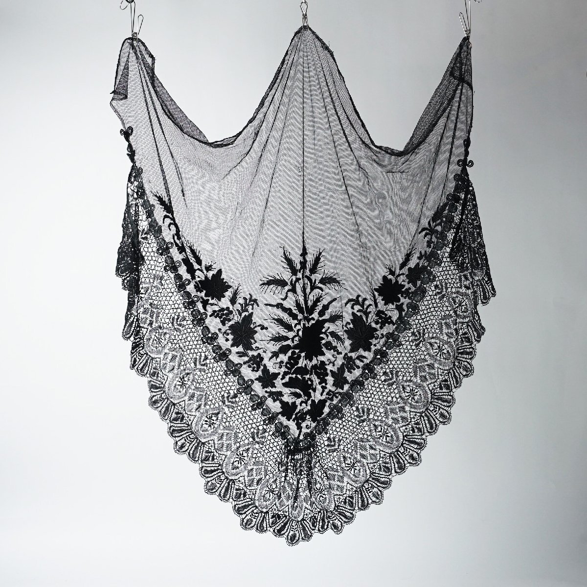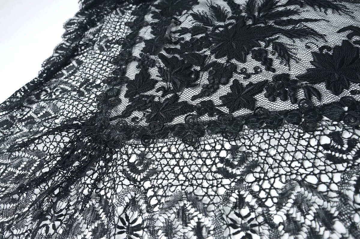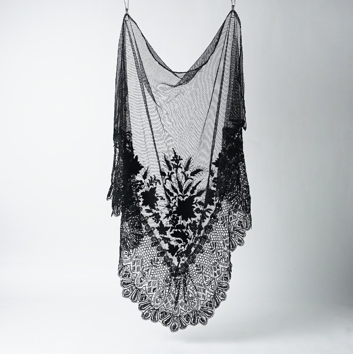 フランス アンティーク レース ベール ショール 黒[E380]