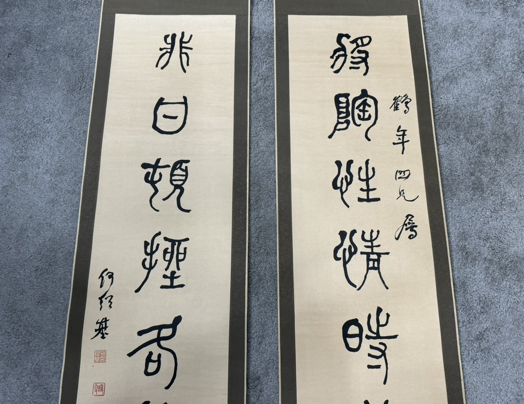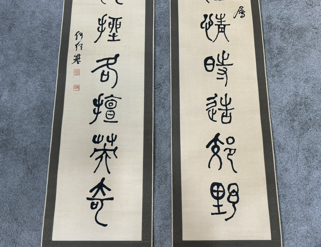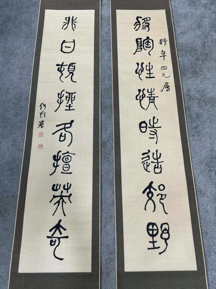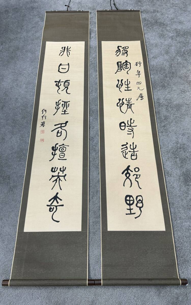 『東京株式会社』 旧家蔵出 中国画 古美術 [何紹基書道対聯] 掛け軸 真筆逸品 肉筆保証 中心尺寸133.5X28cm ABC340