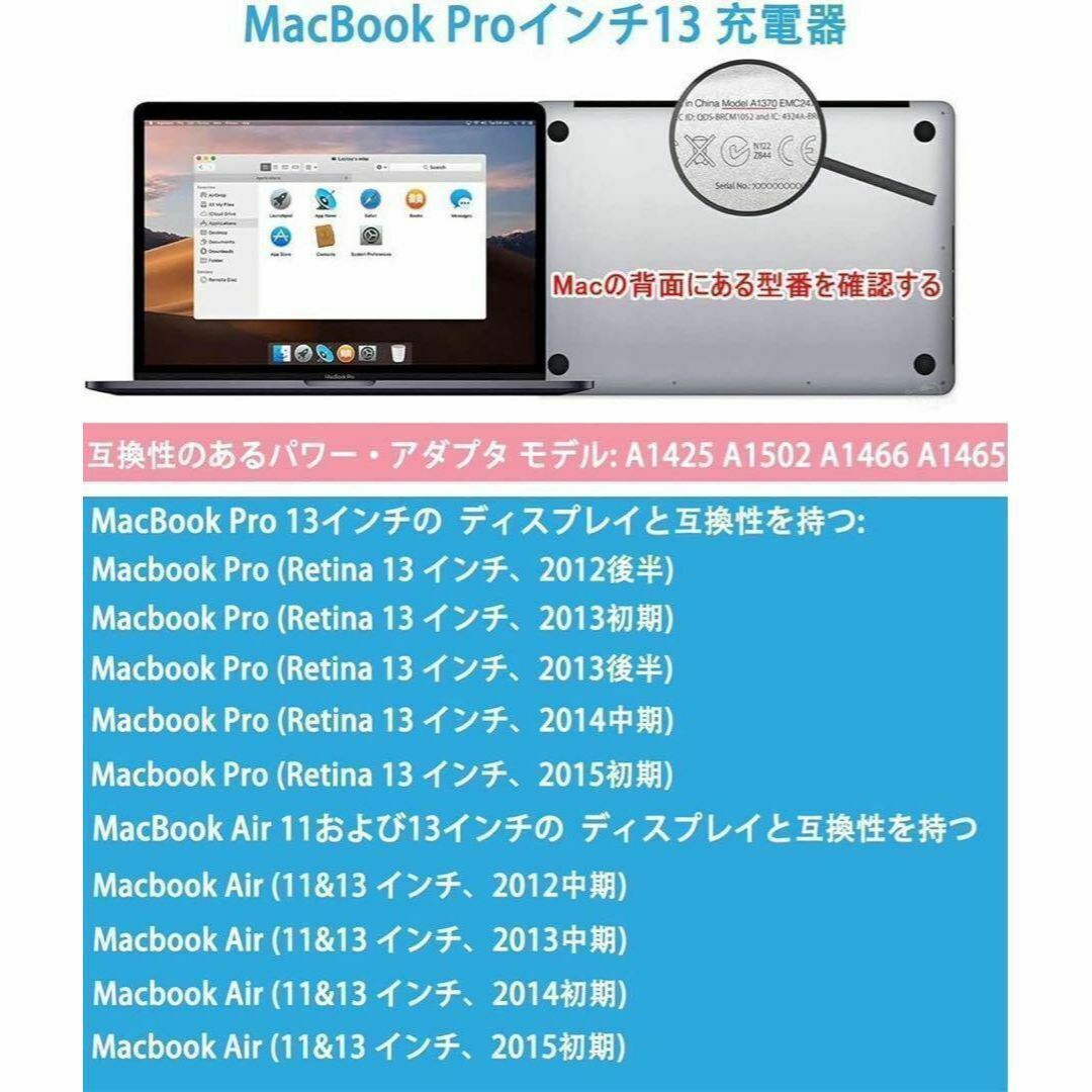 【アップルMacbook Pro Mag 2 T型 充電器】アダプタは2012 中期以降に発売されるアップル Macbook Pro/Air 13 インチに適用します。モデル番号: A1466 / A1465 / A1436 / A1435 / A1425 / A1502。