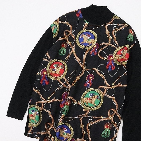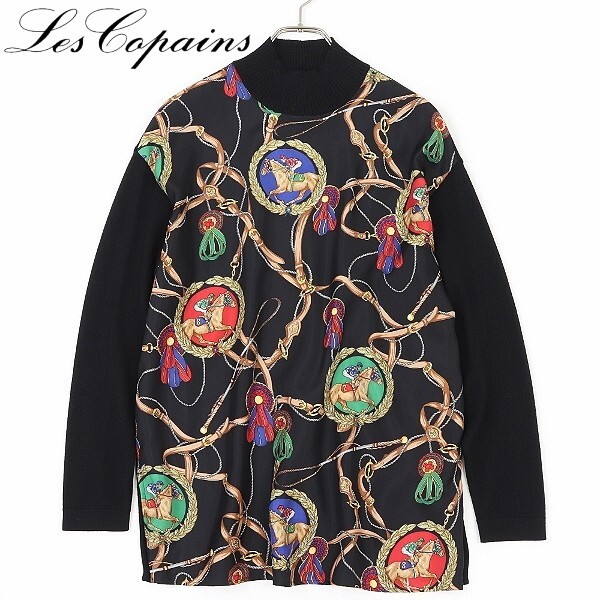 | ◆Les Copains TEMI レコパン ウール×シルク 乗馬 総柄 切替 ニット トップス 黒 ブラック 40 | |
