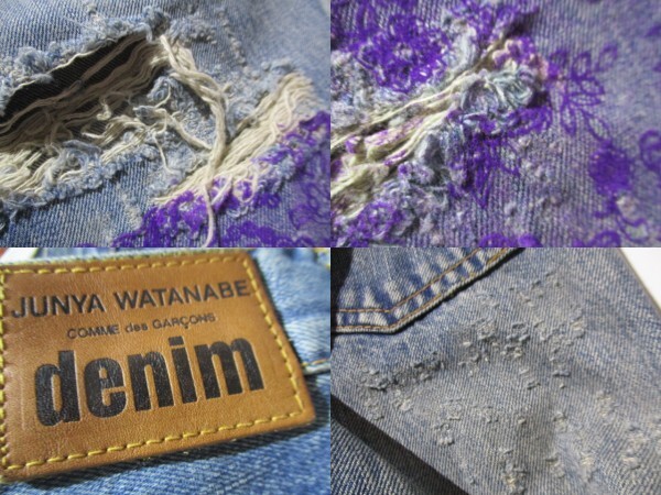 即決 JUNYA WATANABE COMME des GARCONS ジュンヤワタナベ コムデギャルソン クラッシュ加工 レースプリント デニムパンツ レディース S