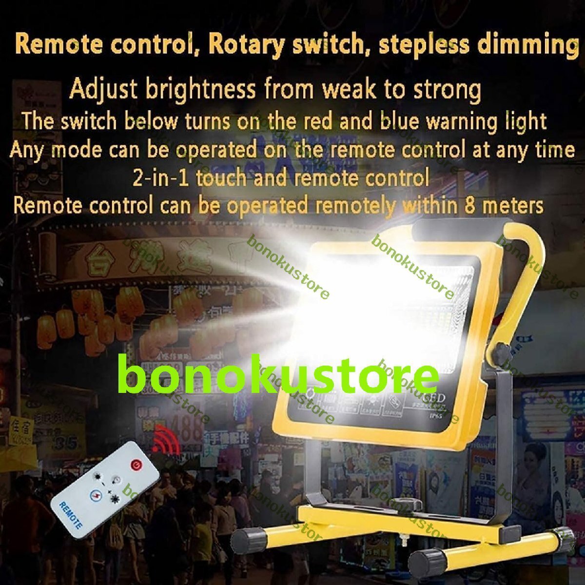 600W LED充電式ワークライト、6段階明るさ防水屋外非常灯、リモコン付き、10400mAhバッテリー内蔵、ポータブル屋外投光器
