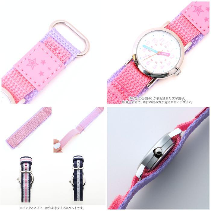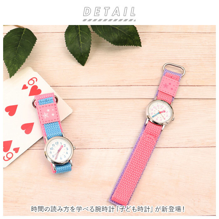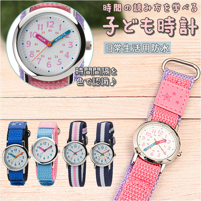 | 商品説明 | ・・時間の読み方を学べる腕時計「子ども時計」が新登場! ・教えやすく、わかりやすい工夫が沢山詰まったアナログ時計。 ・時と分(5分刻み)が表記された文字盤や、色違いの針で、時計の読み方が覚えやすいデザイン。 ・短い針が「HOUR」、長い針が「MINUTE」と記されて、「時間」と「分」が一目瞭然。 ・時間間隔を色で認識して覚えるので、子どもも時計の読み方を楽しく学べる♪ ・日常生活用防水機能付きなのも嬉しいポイント。 ・自分の腕時計を持つことで、時間への意識も高まり、やる気もアップ! ・初めて持つ腕時計として、入園・入学祝いなどプレゼントにオススメ★ |